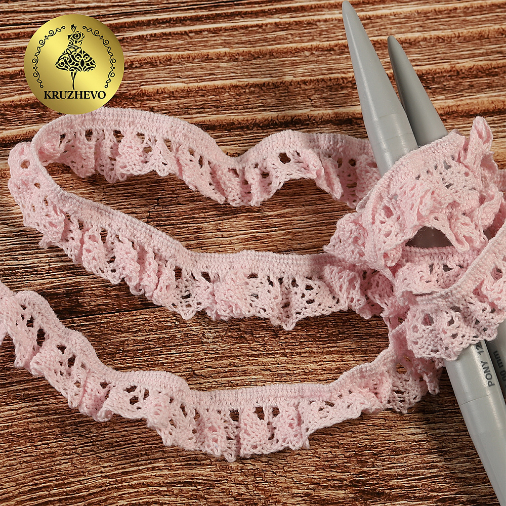 Кружево вязаное (тесьма) на резинке 17 мм -5236 цв.20 св.розовый уп.10м, Kruzhevo