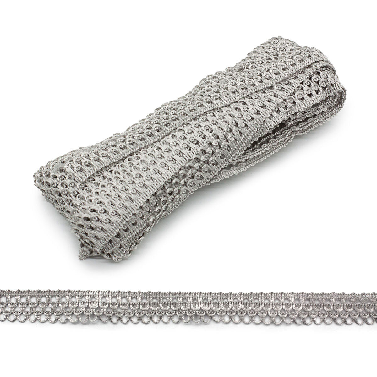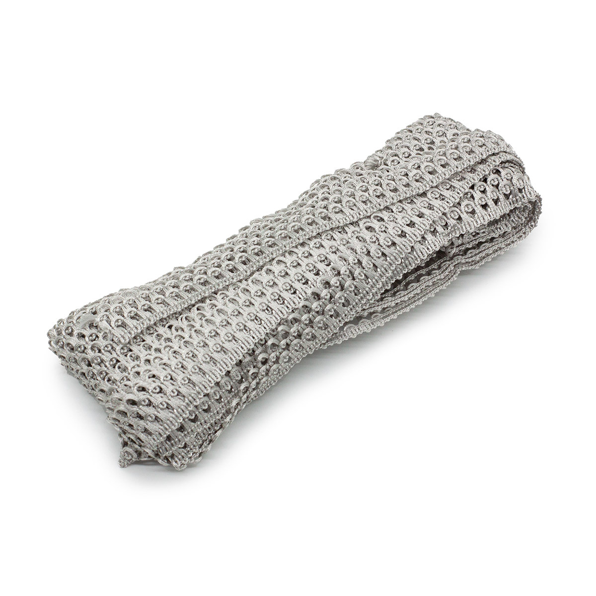 Тесьма отделочная 16 мм / 10 метров, вязаная, серебристый, С1292