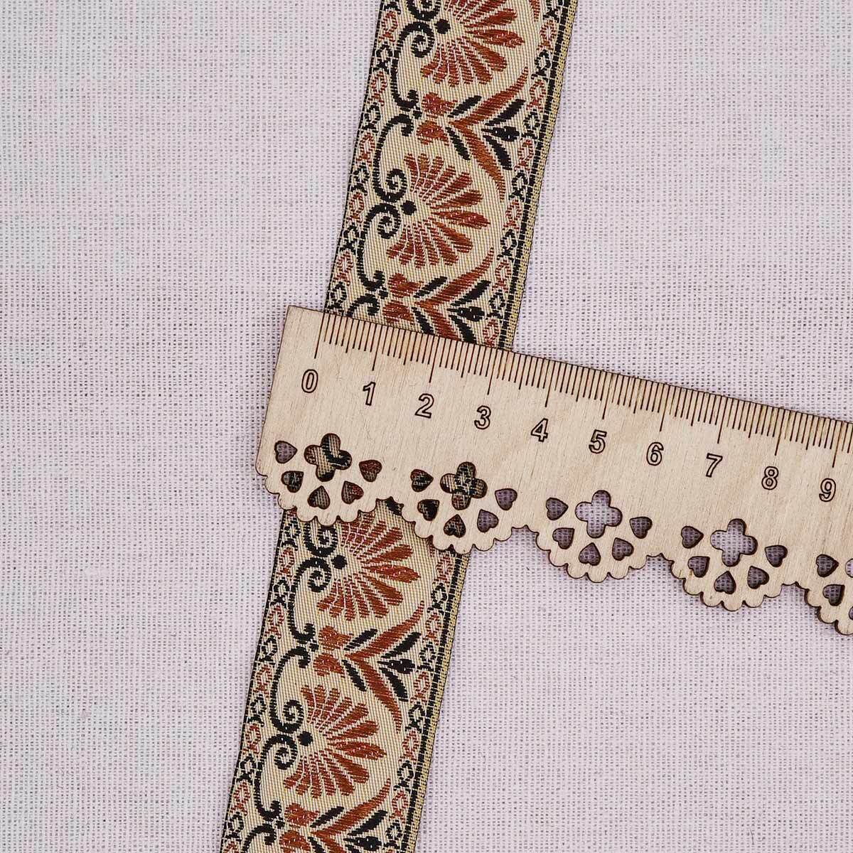 Лента (тесьма) жаккардовая 33.0 мм / 10±0.5 метров, бежево-красный, 3AR2681