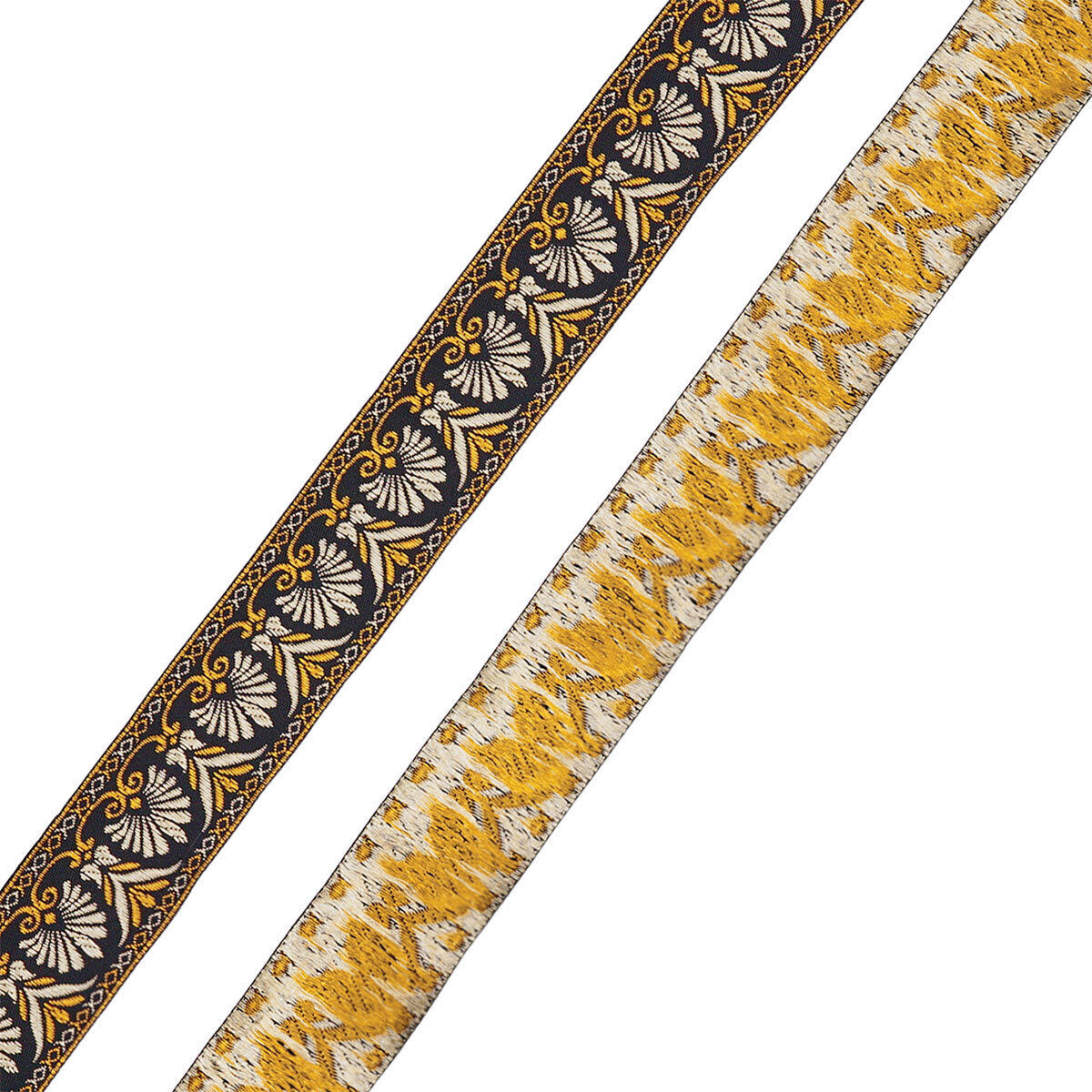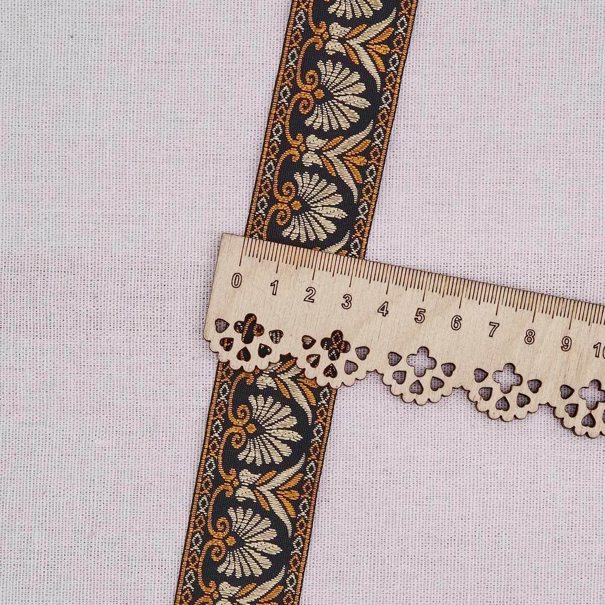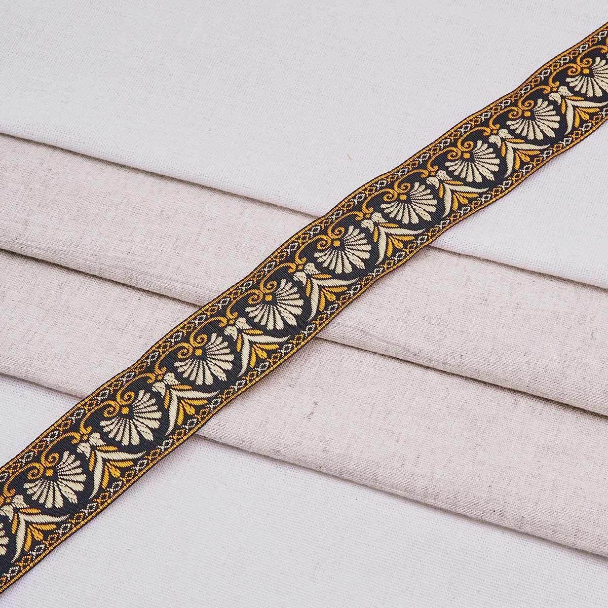 Лента (тесьма) жаккардовая 33.0 мм / 10±0.5 метров, черно-золотой, 3AR2681