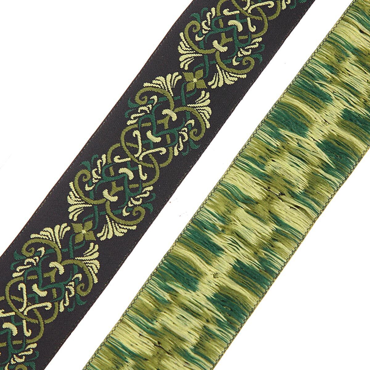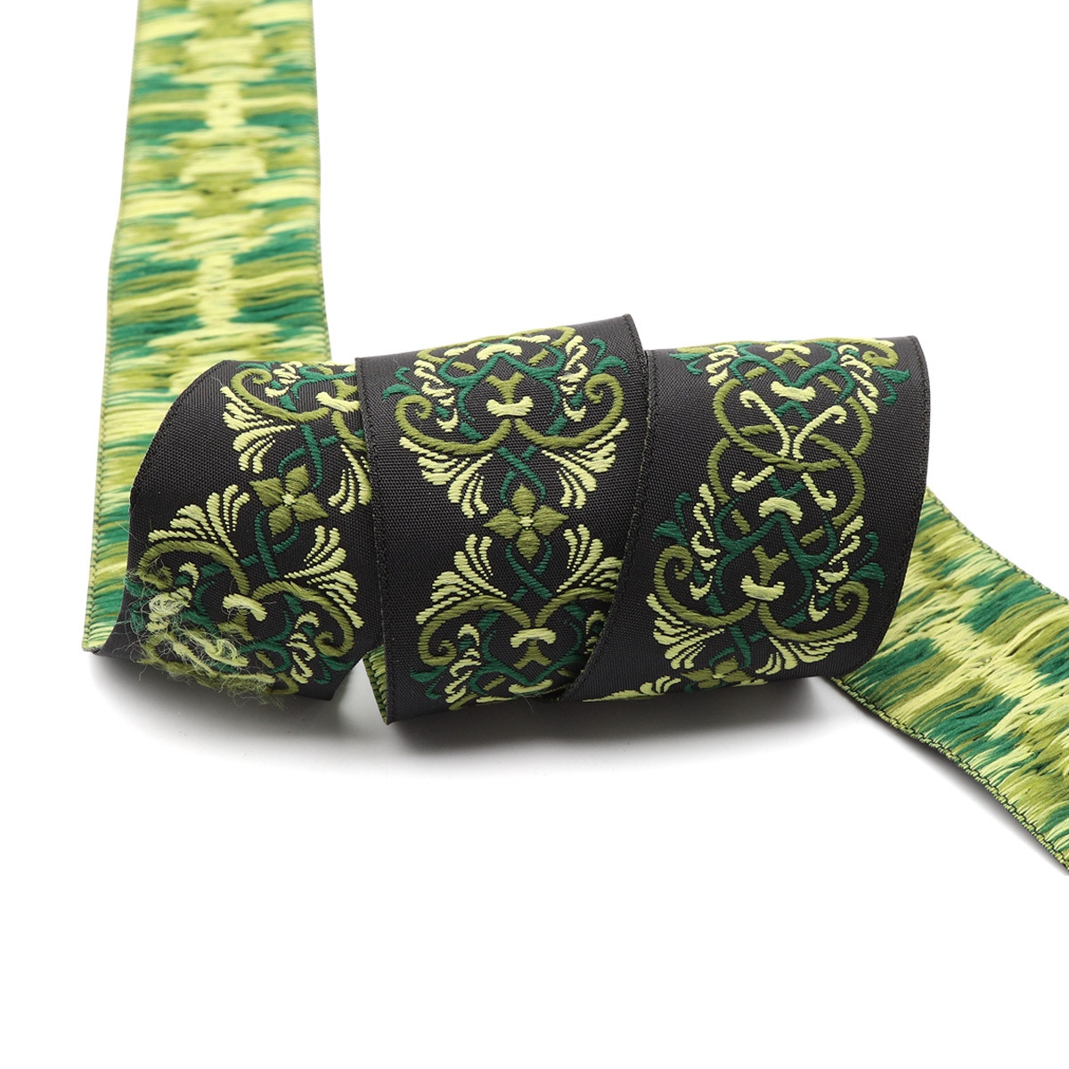 Лента (тесьма) жаккардовая 35.0 мм / 10±0.5 метров, Дамаск (V4 черный/зеленый), 35976