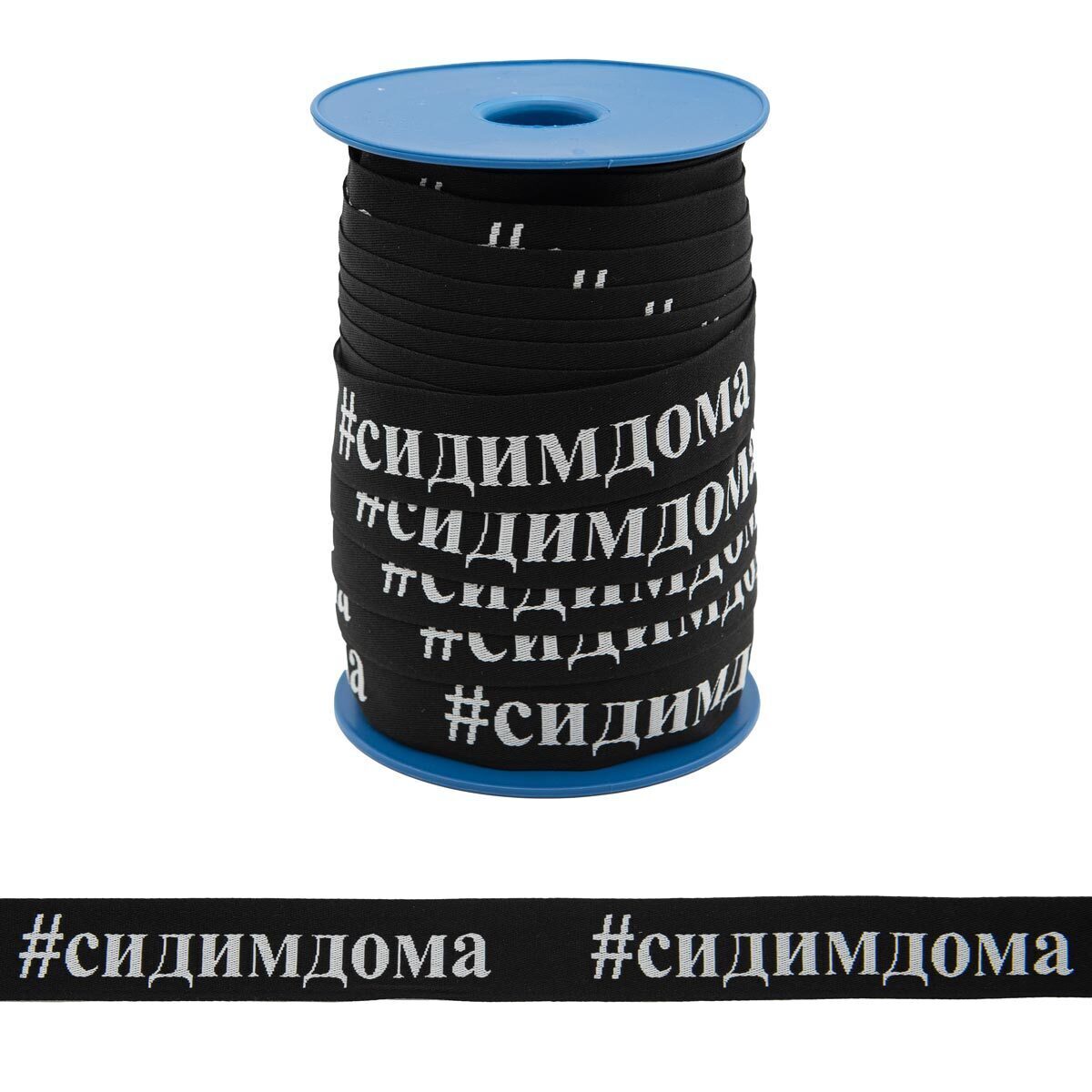 Лента (тесьма) жаккардовая 30.0 мм / 50 метров, "#сидим дома", черный/белый, 140030