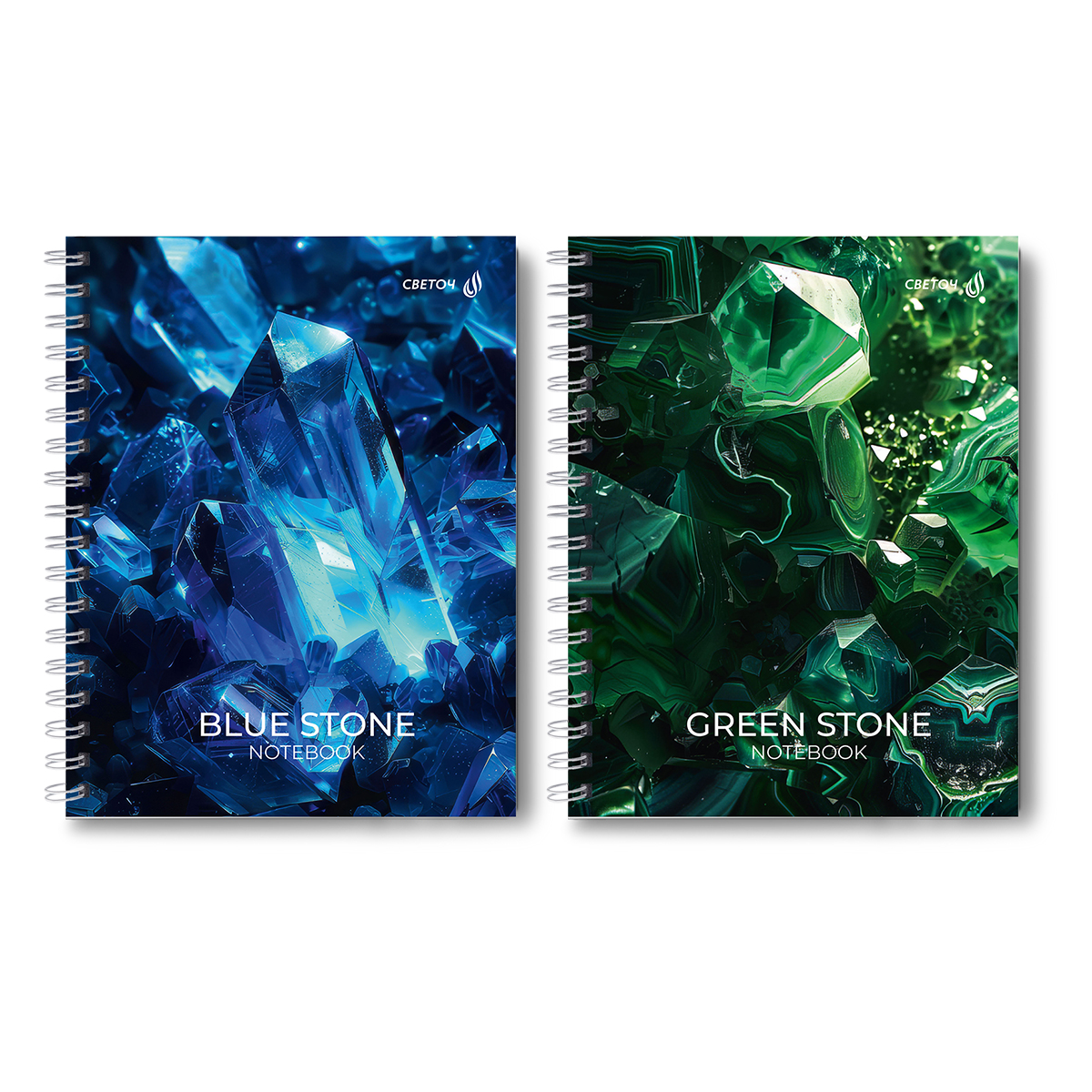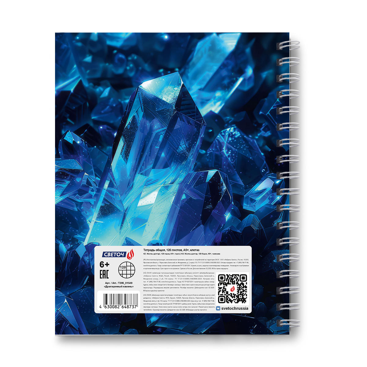 Тетрадь общая с твердой обложкой, глянцевая ламинация A5 120 л. на гребне 65 г/м², белизна 100% 4 шт клетка, 01549 Драгоценный камень, Светоч Т206
