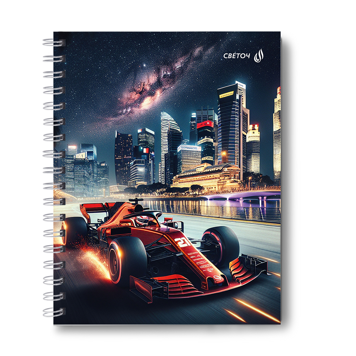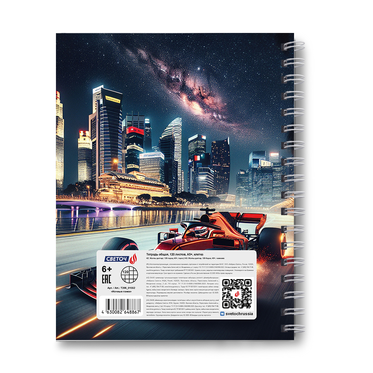 Тетрадь общая с твердой обложкой, глянцевая ламинация A5 120 л. на гребне 65 г/м², белизна 100% 4 шт клетка, 01552 Ночные гонки, Светоч Т206
