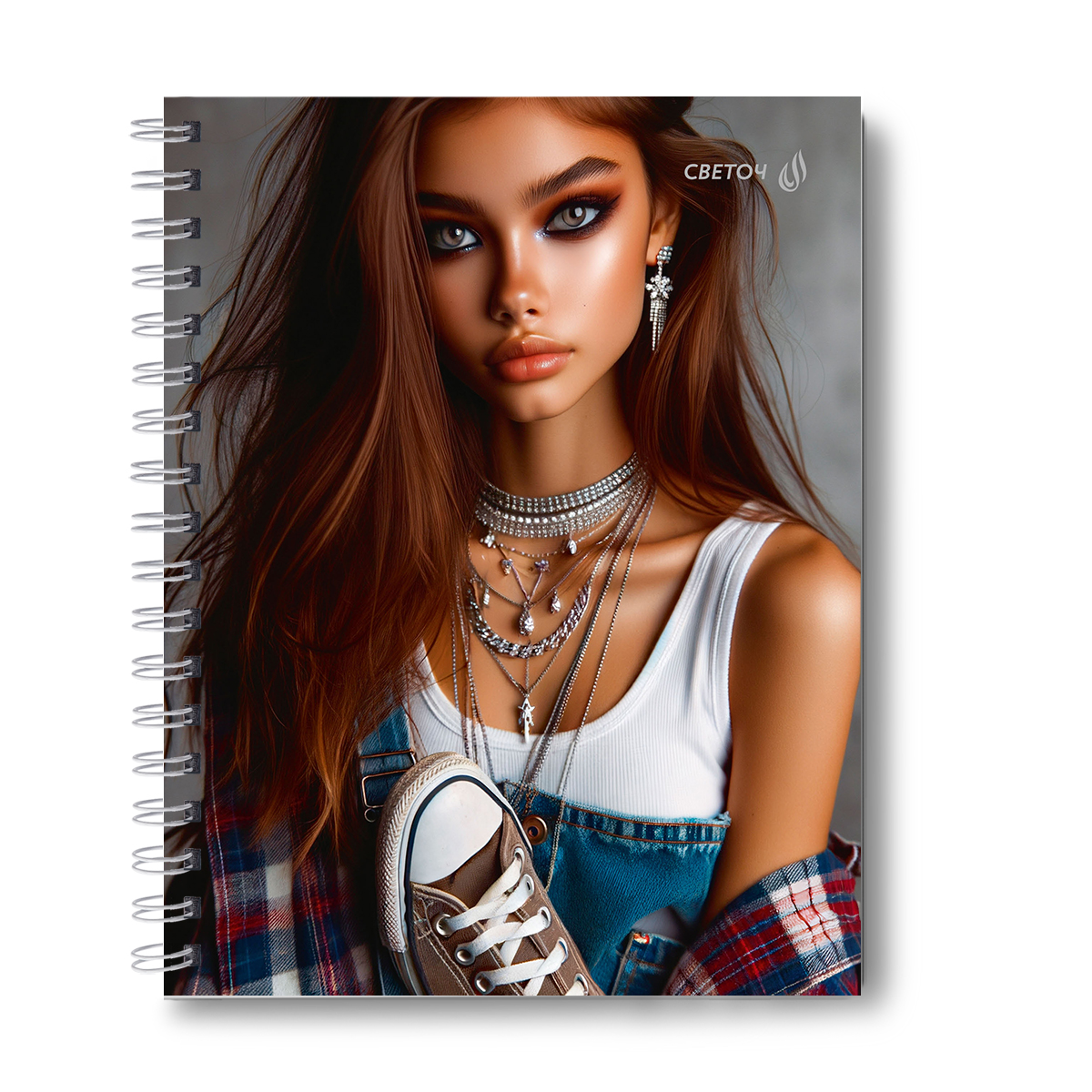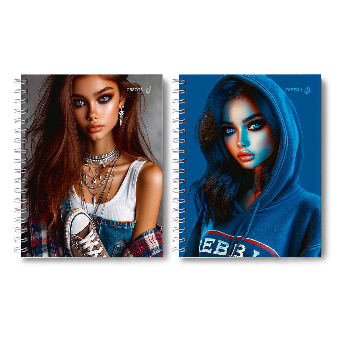Тетрадь общая с твердой обложкой, глянцевая ламинация A5 80 л. на гребне 65 г/м², белизна 100% 4 шт клетка, 01563 Чаровница, Светоч Т215
