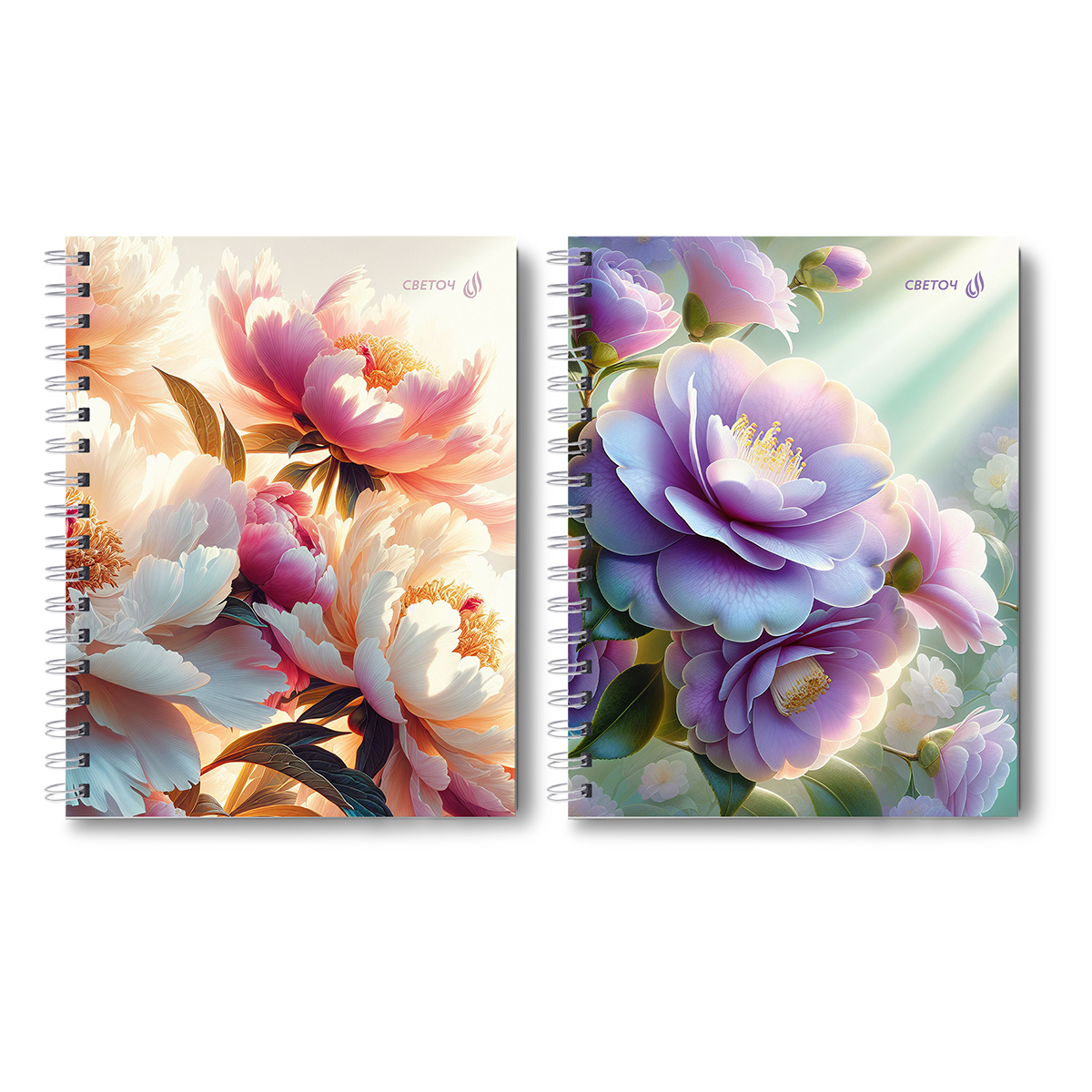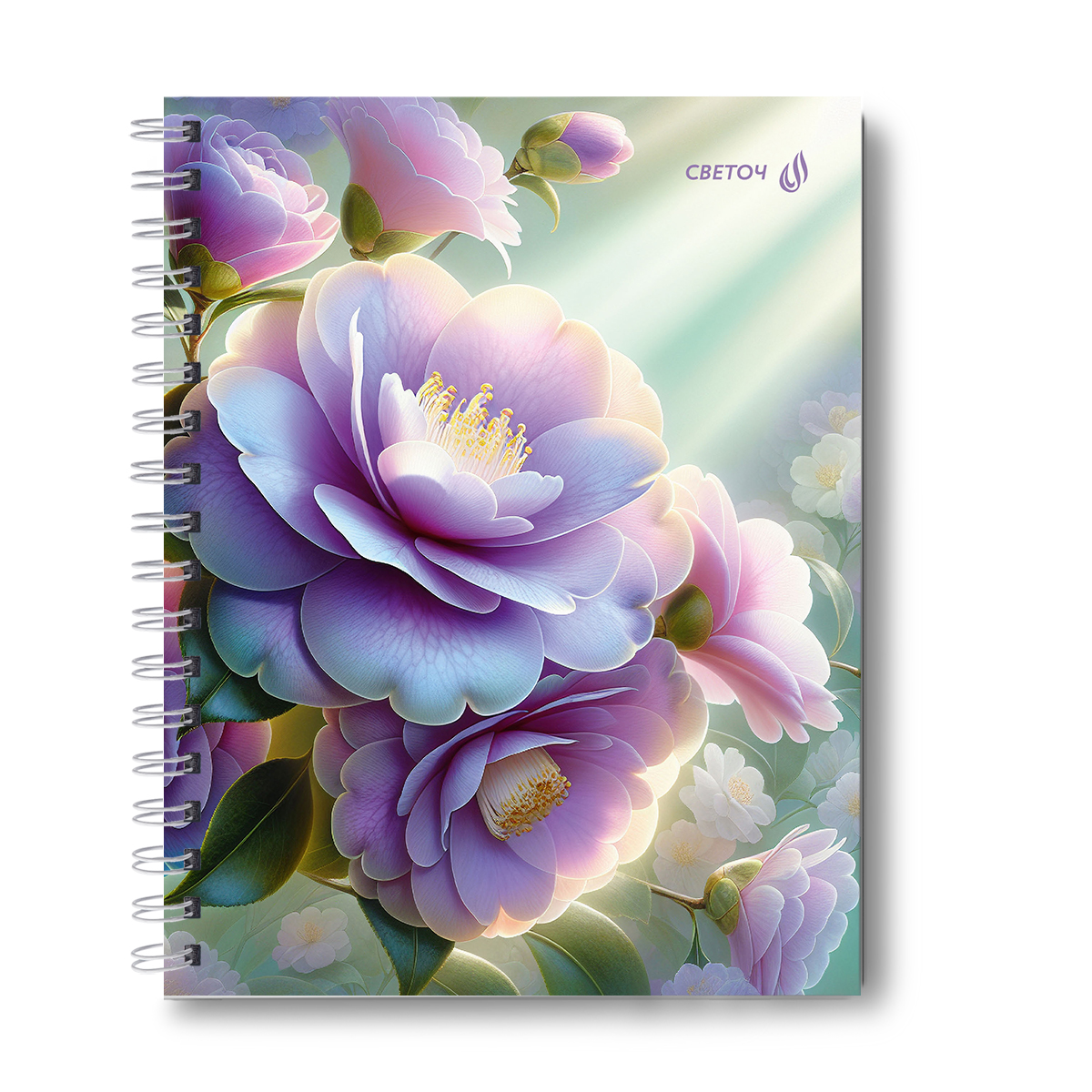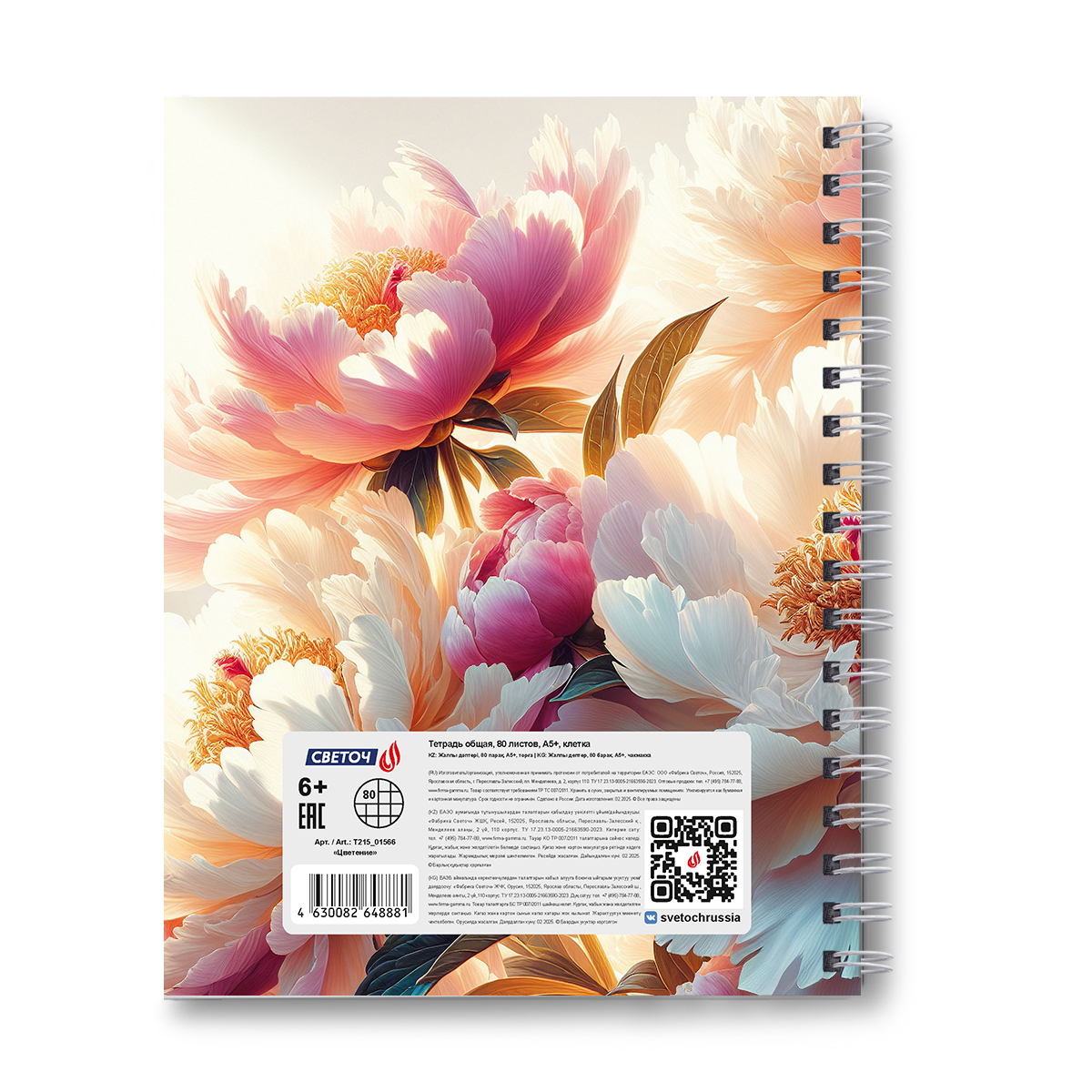 Тетрадь общая с твердой обложкой, глянцевая ламинация A5 80 л. на гребне 65 г/м², белизна 100% 4 шт клетка, 01566 Цветение, Светоч Т215