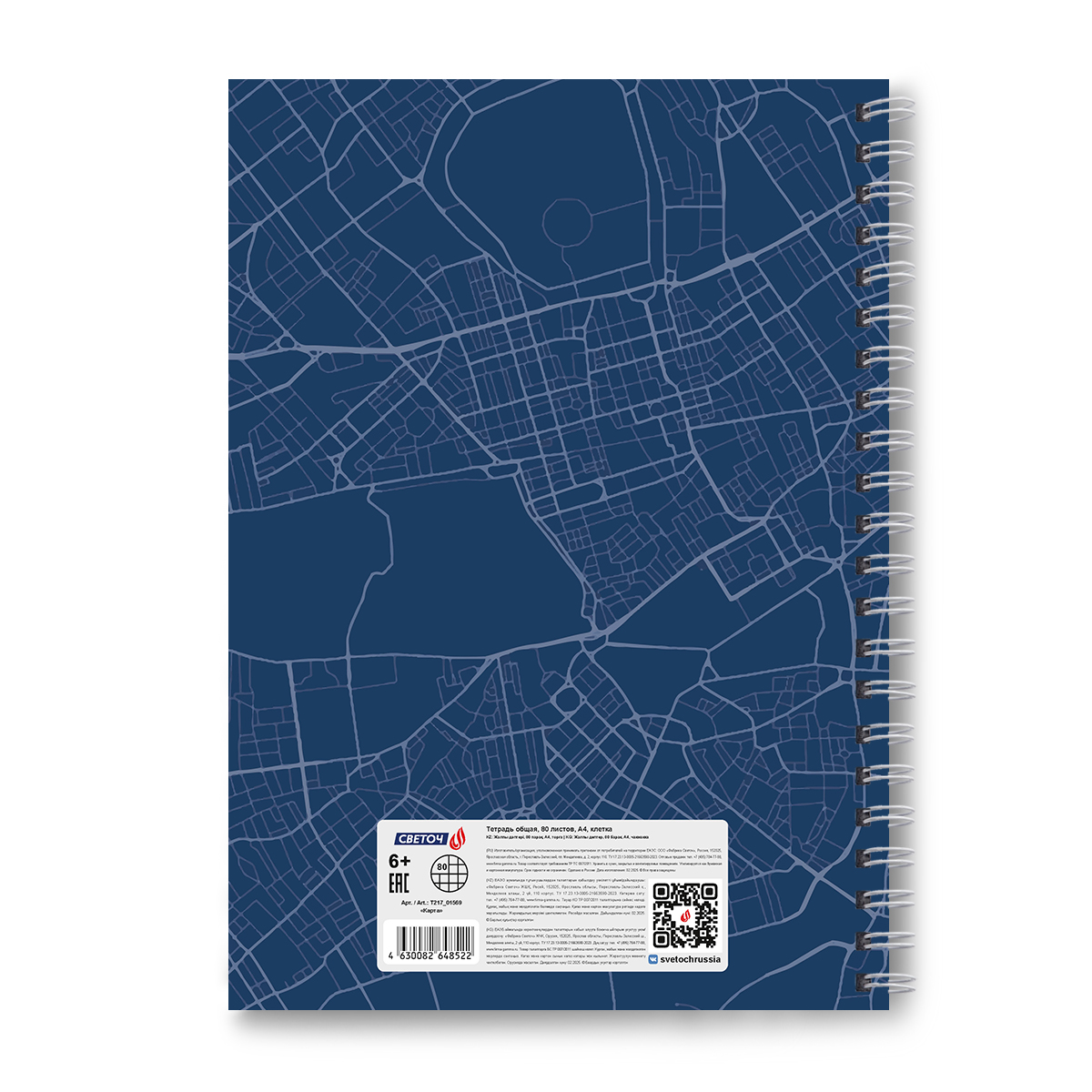 Тетрадь общая с твердой обложкой, матовая ламинация A4 80 л. на гребне 65 г/м², белизна 100% 2 шт клетка, 01569 Карта, Светоч Т217