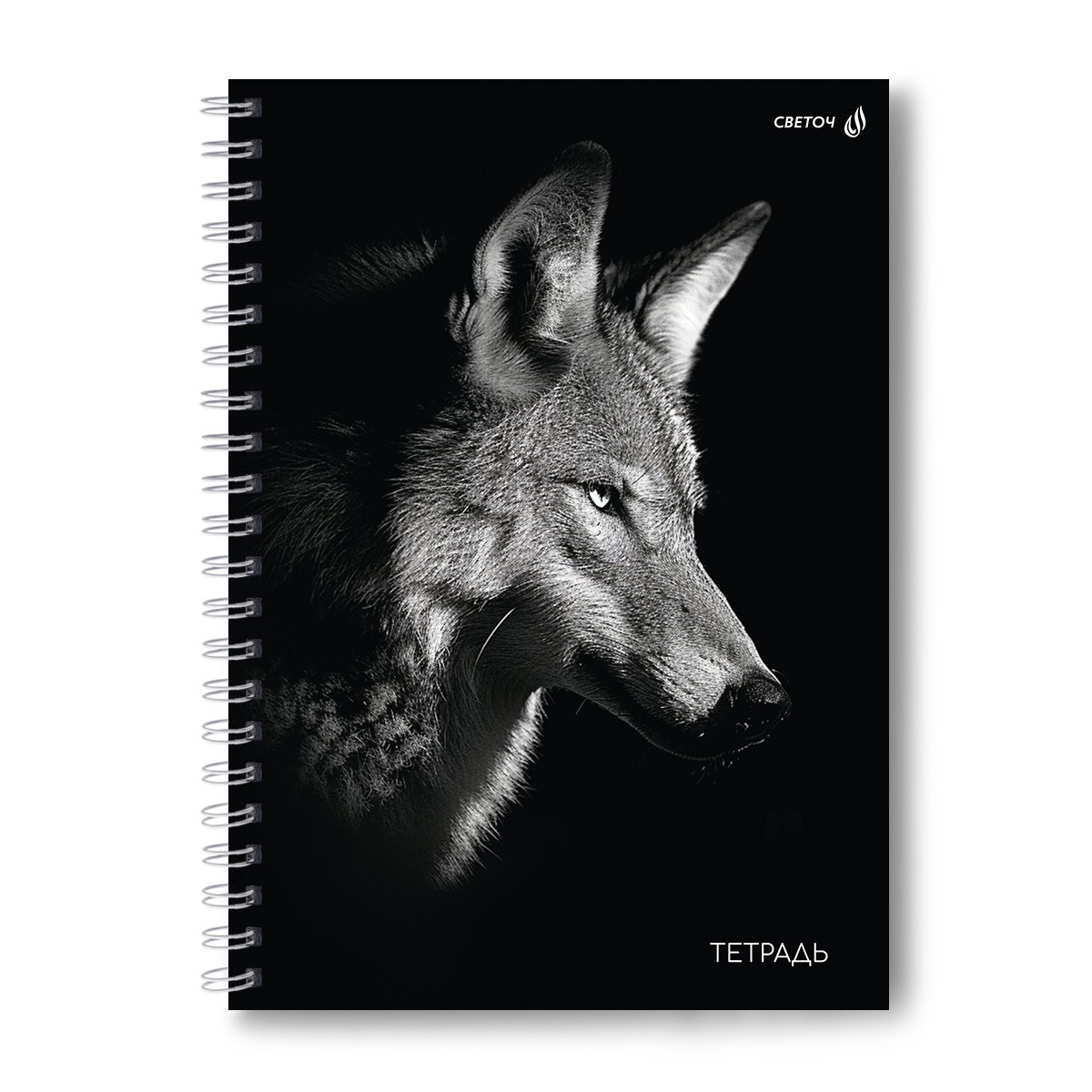 Тетрадь общая с твердой обложкой, матовая ламинация A4 80 л. на гребне 65 г/м², белизна 100% 2 шт клетка, 01572 Волк, Светоч Т217