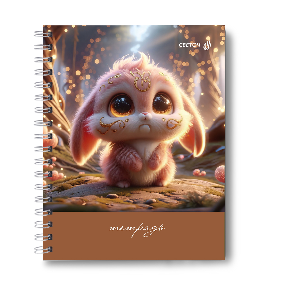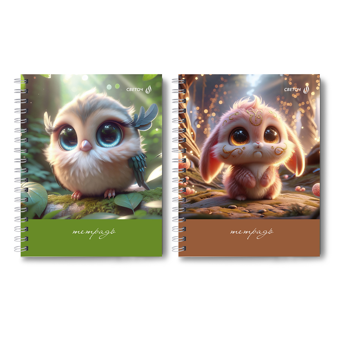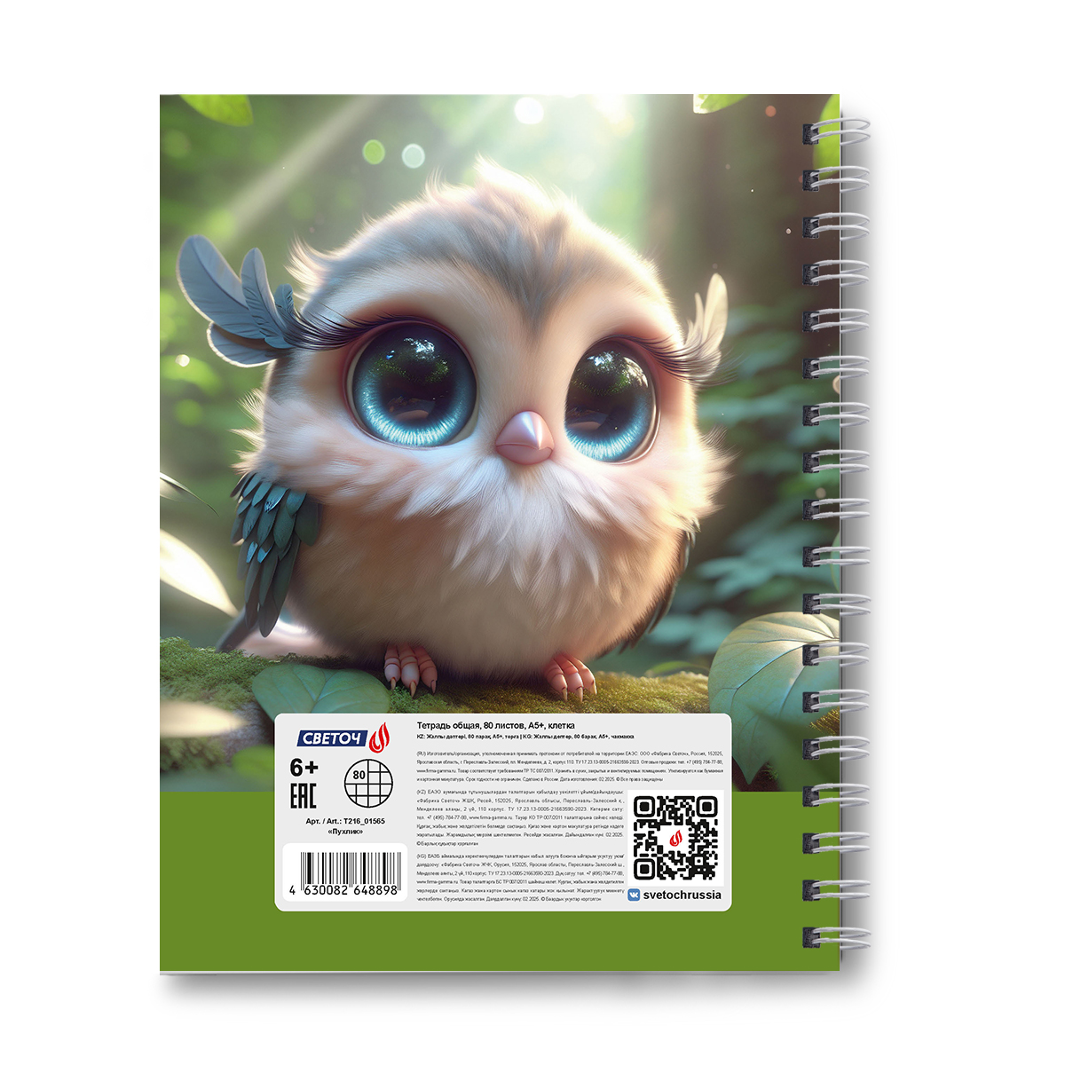 Тетрадь общая с твердой обложкой, матовая ламинация + выборочный лак A5 80 л. на гребне 65 г/м², белизна 100% 4 шт клетка, 01565 Пухлик, Светоч Т216