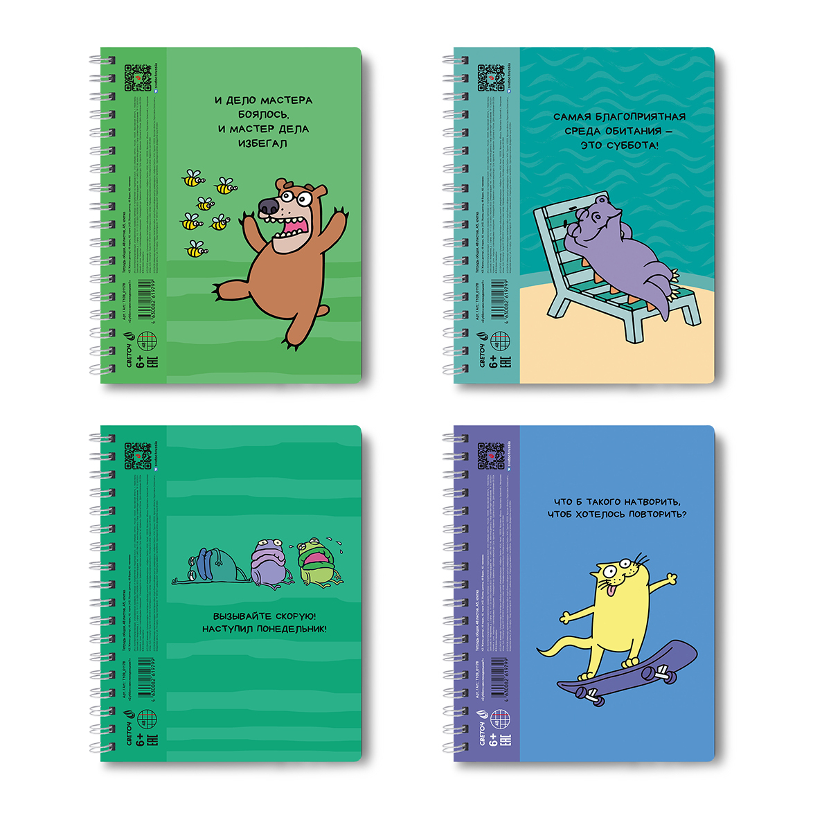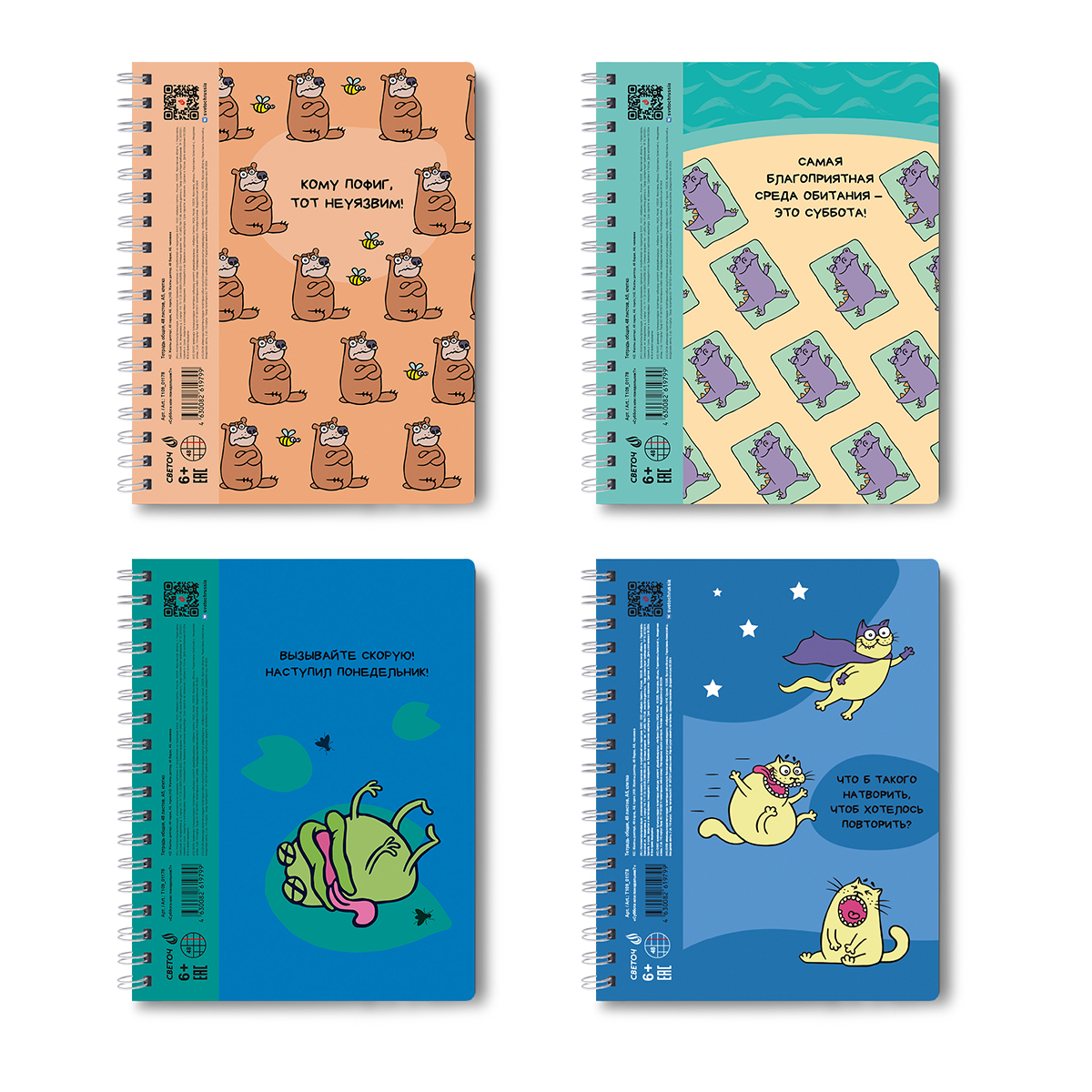 Тетради имеют скругленные углы.