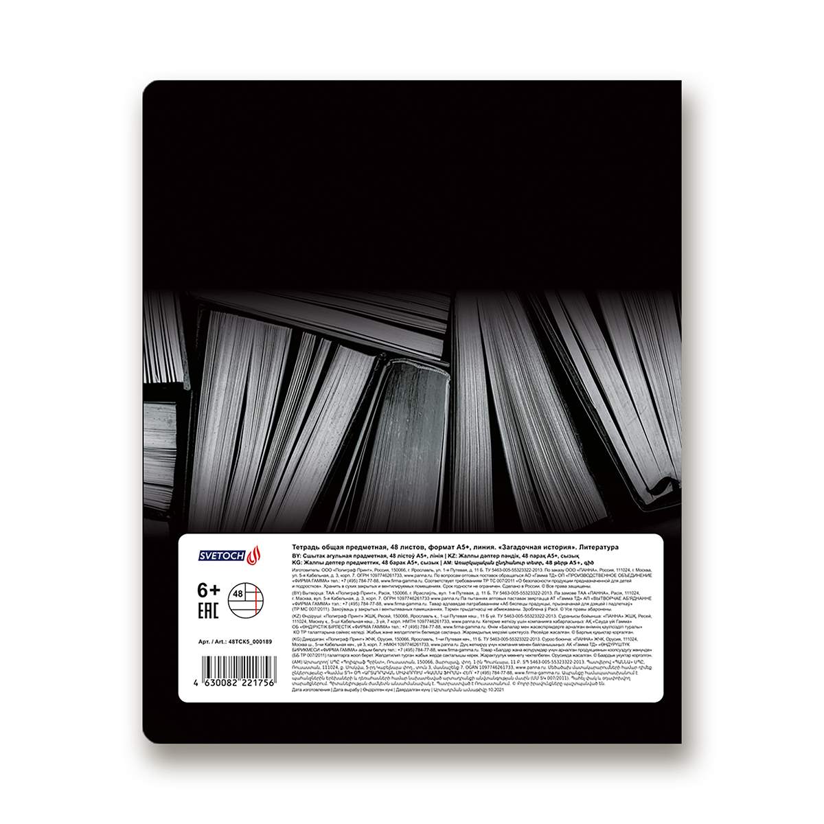 Тетрадь предметная Загадочная история A5+ 48 л. на скобе, белизна 100%, 10 шт, линия, 48ТСК5/000189 Литература, Светоч