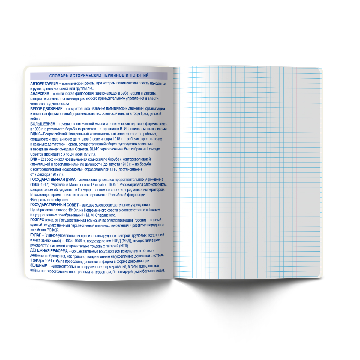 Тетрадь со справ.материал. Архивариус пластик.обл. 320мкм с тис.золот.фольгой. A5 48 л. на скобе 65 г/м², белизна 100% 10 шт, клетка, 01876 Архивариус История, Светоч Т290