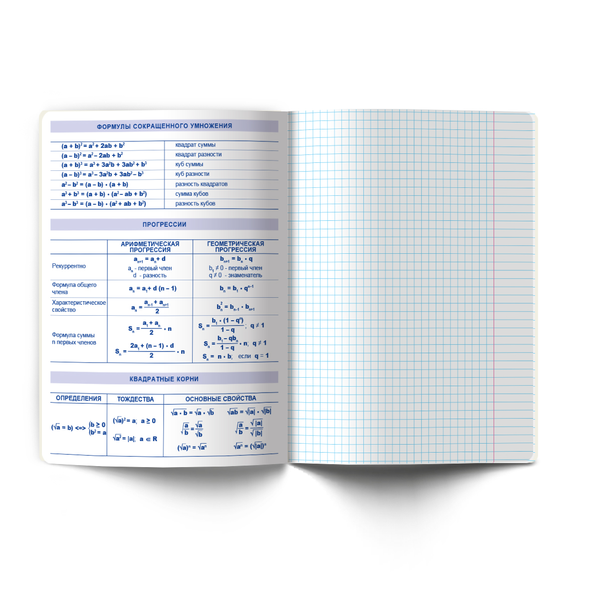 Тетради имеют закругленные уголки, титульный лист со справочным материалом.