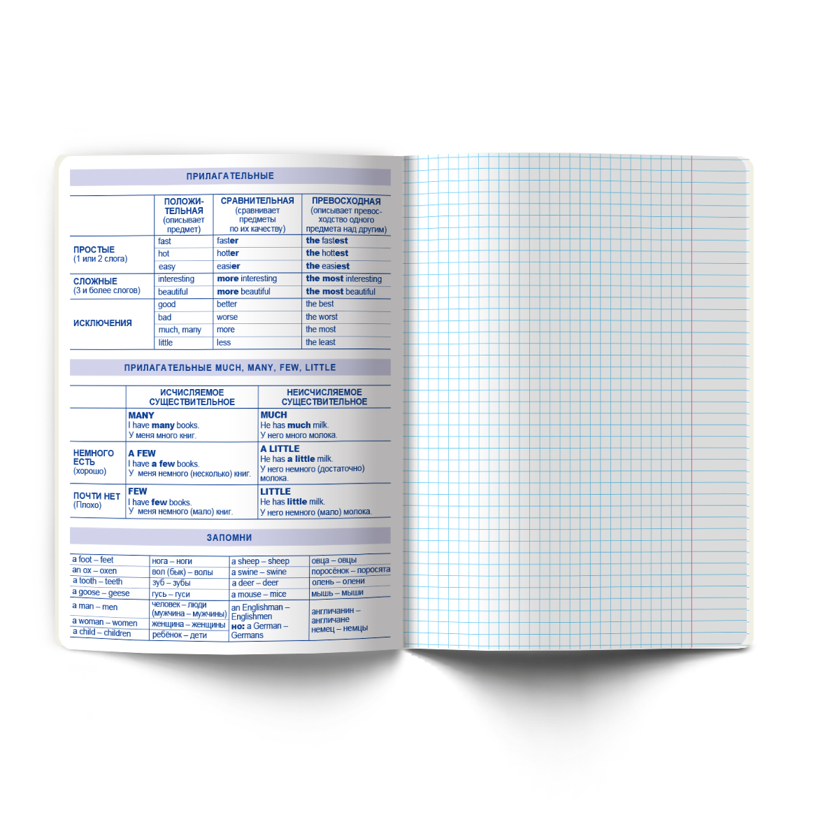 Тетради имеют закругленные уголки, титульный лист со справочным материалом.