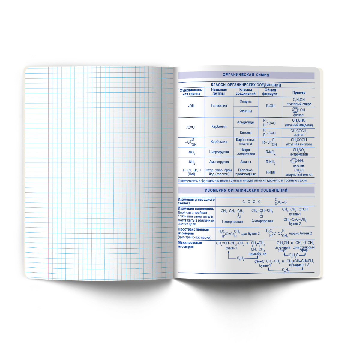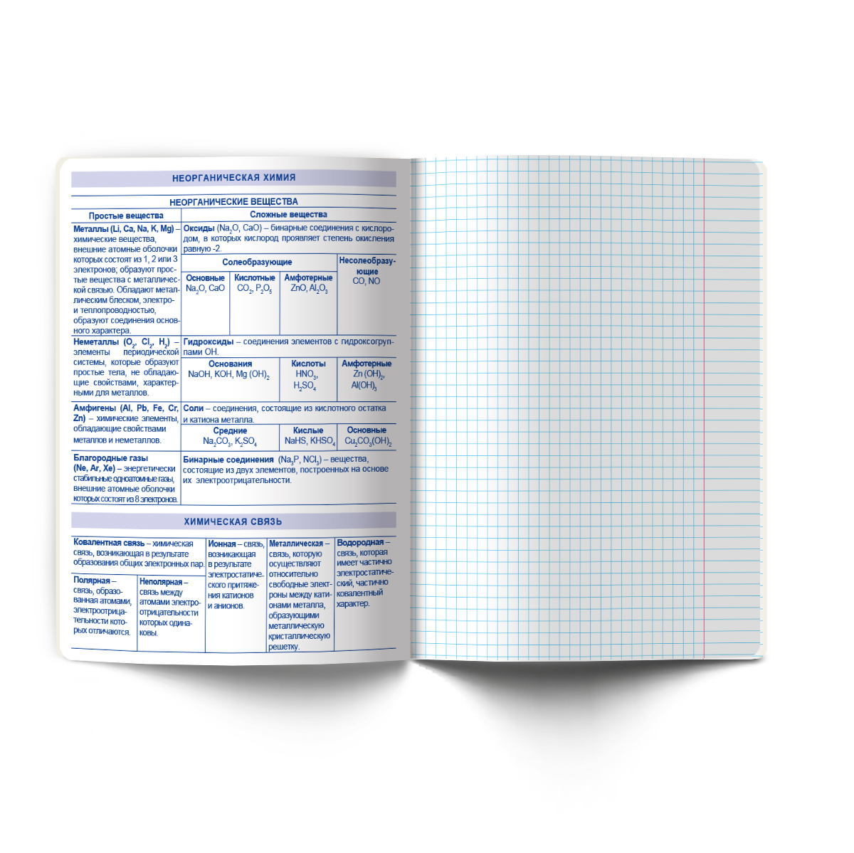 Тетради имеют закругленные уголки, титульный лист со справочным материалом.
