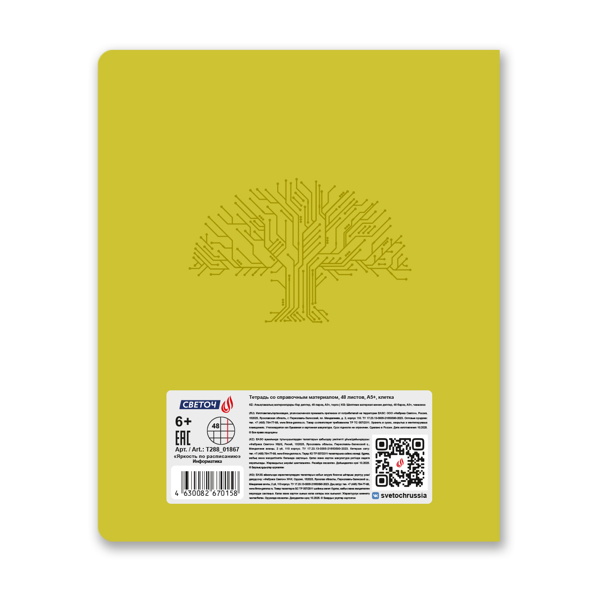 Тетрадь со справ.материал. Яркость по расписанию с запечат. пластик.обл. 320мкм, A5 48 л. на скобе 65 г/м², белизна 100% 10 шт, клетка, 01867 Яркость по расписанию Информатика, Светоч Т288