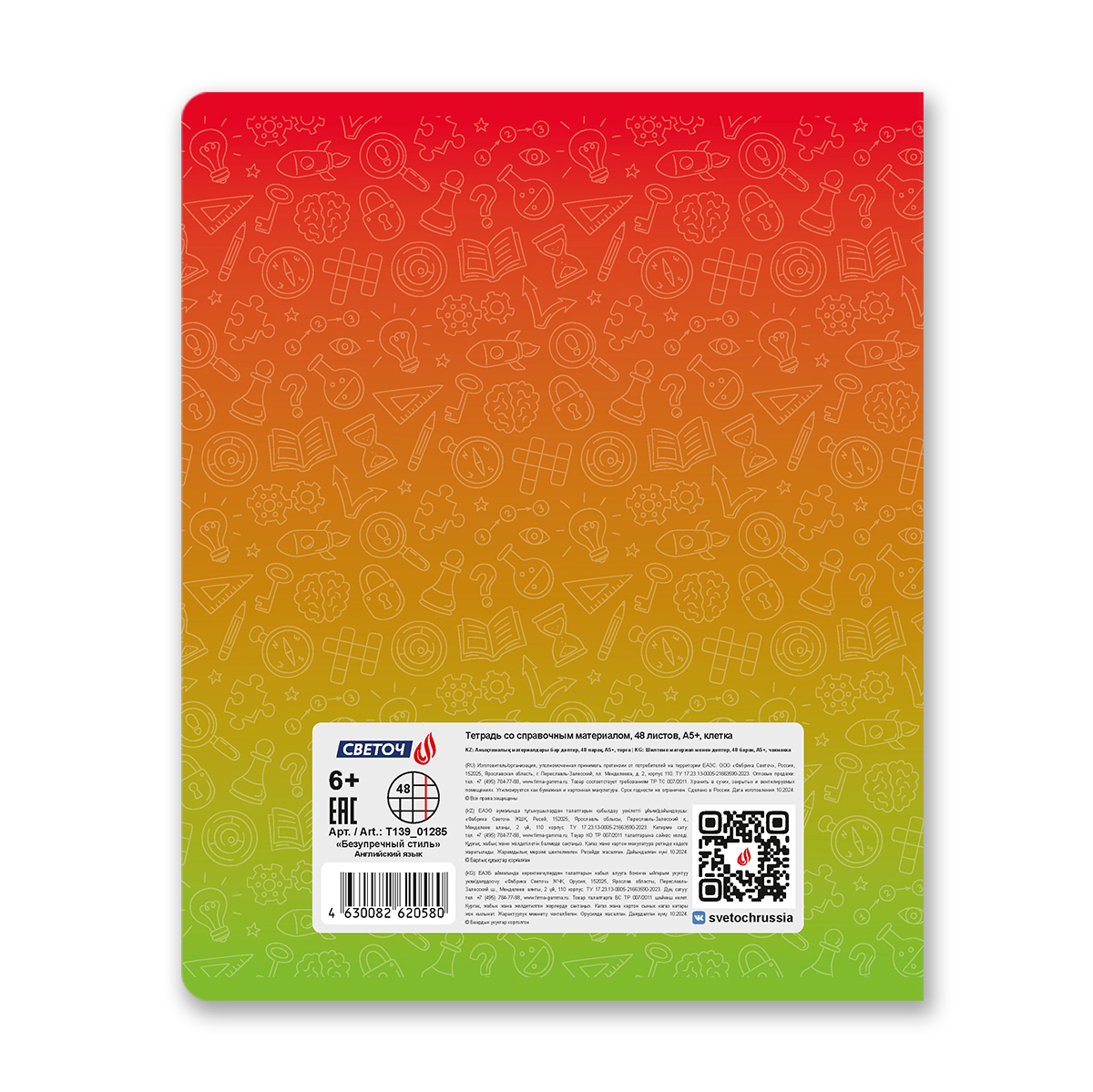 Тетрадь со справочным материалом Безупречный стиль, A5 48 л. на скобе 60 г/м², белизна 90 %, 10 шт, клетка, 01285 Безупречный стиль Английский язык, Светоч Т139