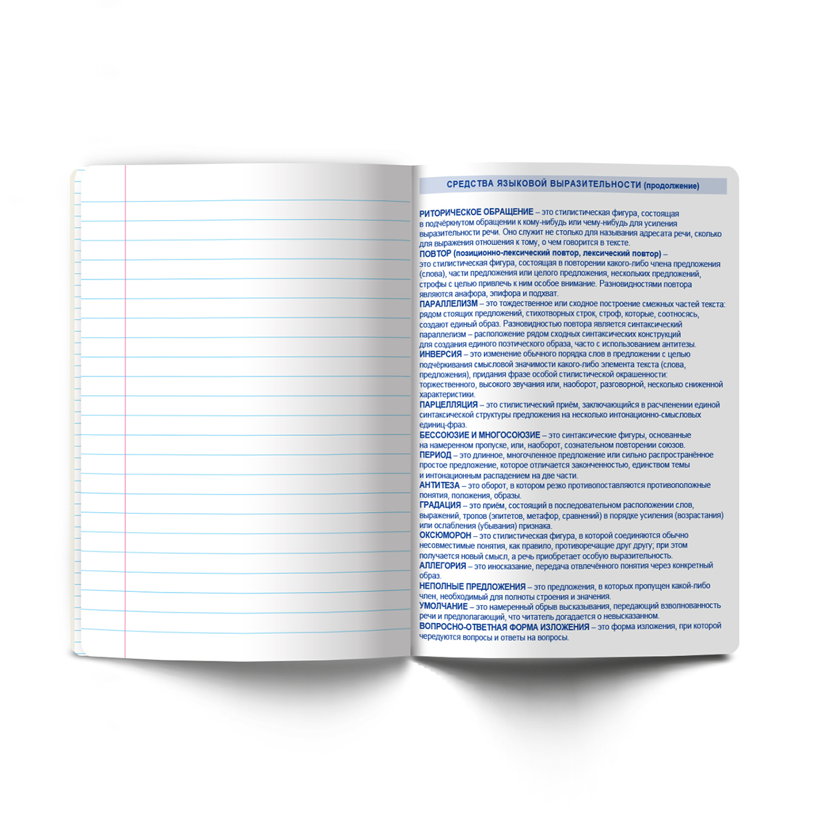 Тетрадь со справочным материалом "Безупречный стиль", A5 48 л. на скобе 60 г/м², белизна 90 \%, 10 шт, линия, 01290 "Безупречный стиль" Литература, Светоч, Т140