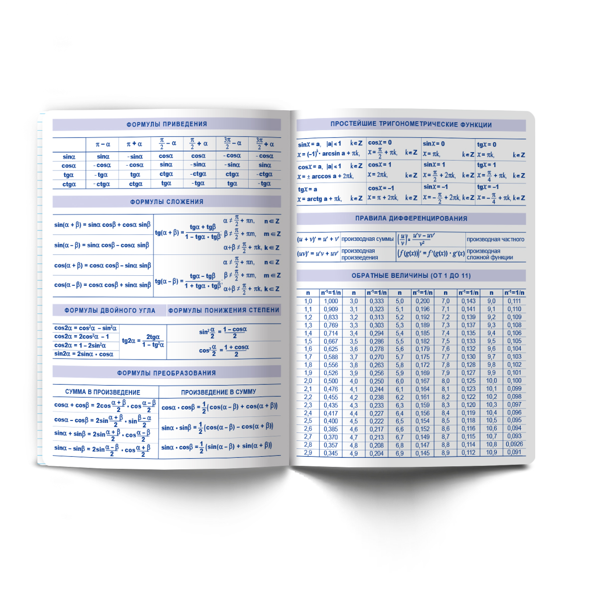 Тетрадь со справочным материалом Большая перемена, выбор.лак, A5 48 л. на скобе 65 г/м², белизна 100% 10 шт клетка, 01811 Большая перемена Алгебра, Светоч Т280