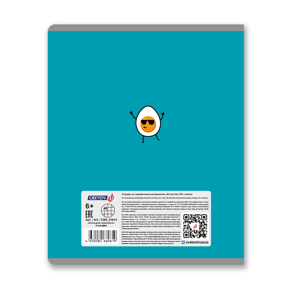 Тетрадь со справочным материалом Большая перемена, выбор.лак, A5 48 л. на скобе 65 г/м², белизна 100% 10 шт клетка, 01814 Большая перемена География, Светоч Т280
