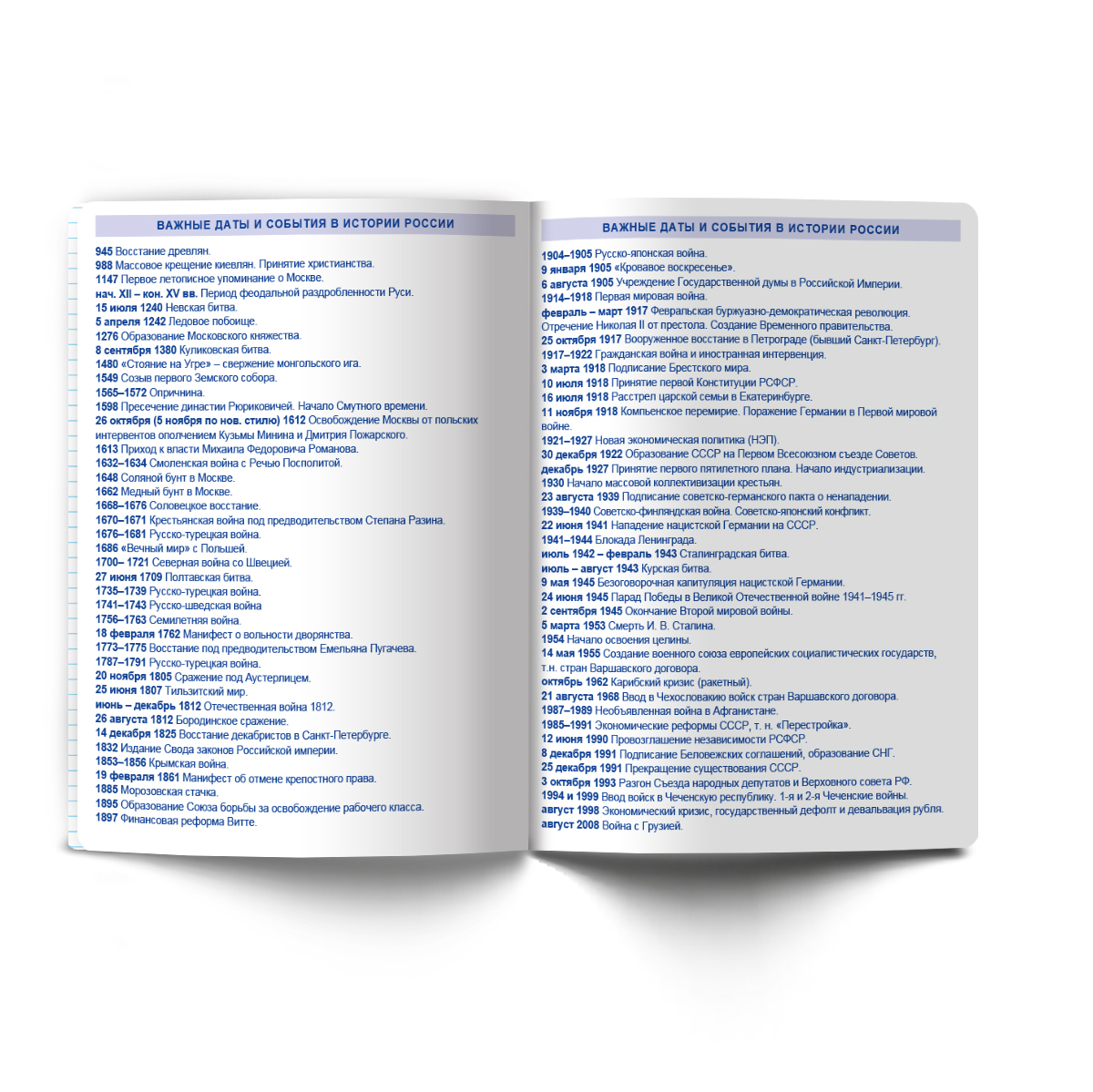 Тетрадь со справочным материалом Большая перемена, выбор.лак, A5 48 л. на скобе 65 г/м², белизна 100% 10 шт клетка, 01816 Большая перемена История, Светоч Т280