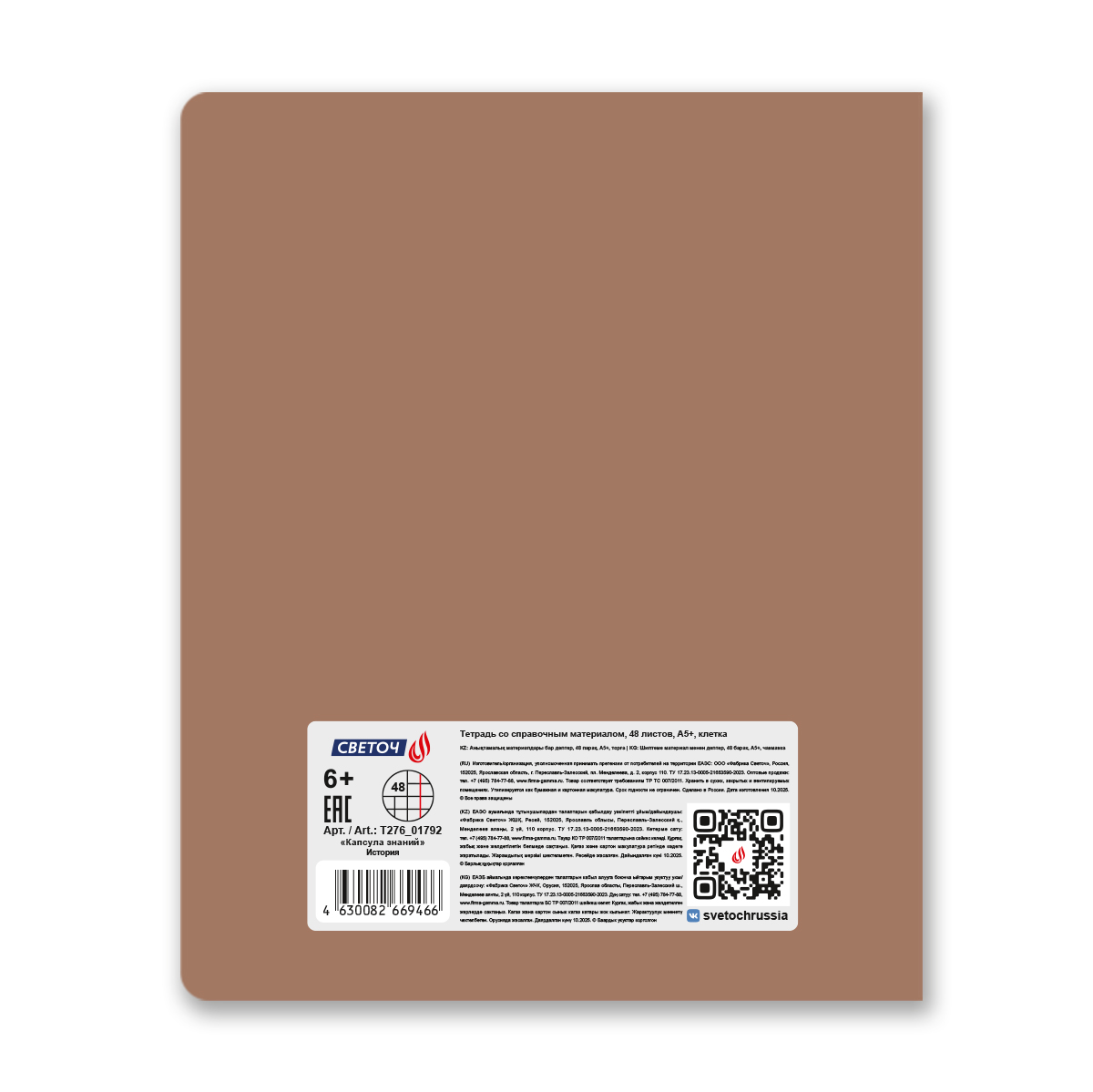 Тетрадь со справочным материалом Капсула знаний, A5 48 л. на скобе 60 г/м², белизна 90% 10 шт клетка, 01792 Капсула знаний История, Светоч Т276