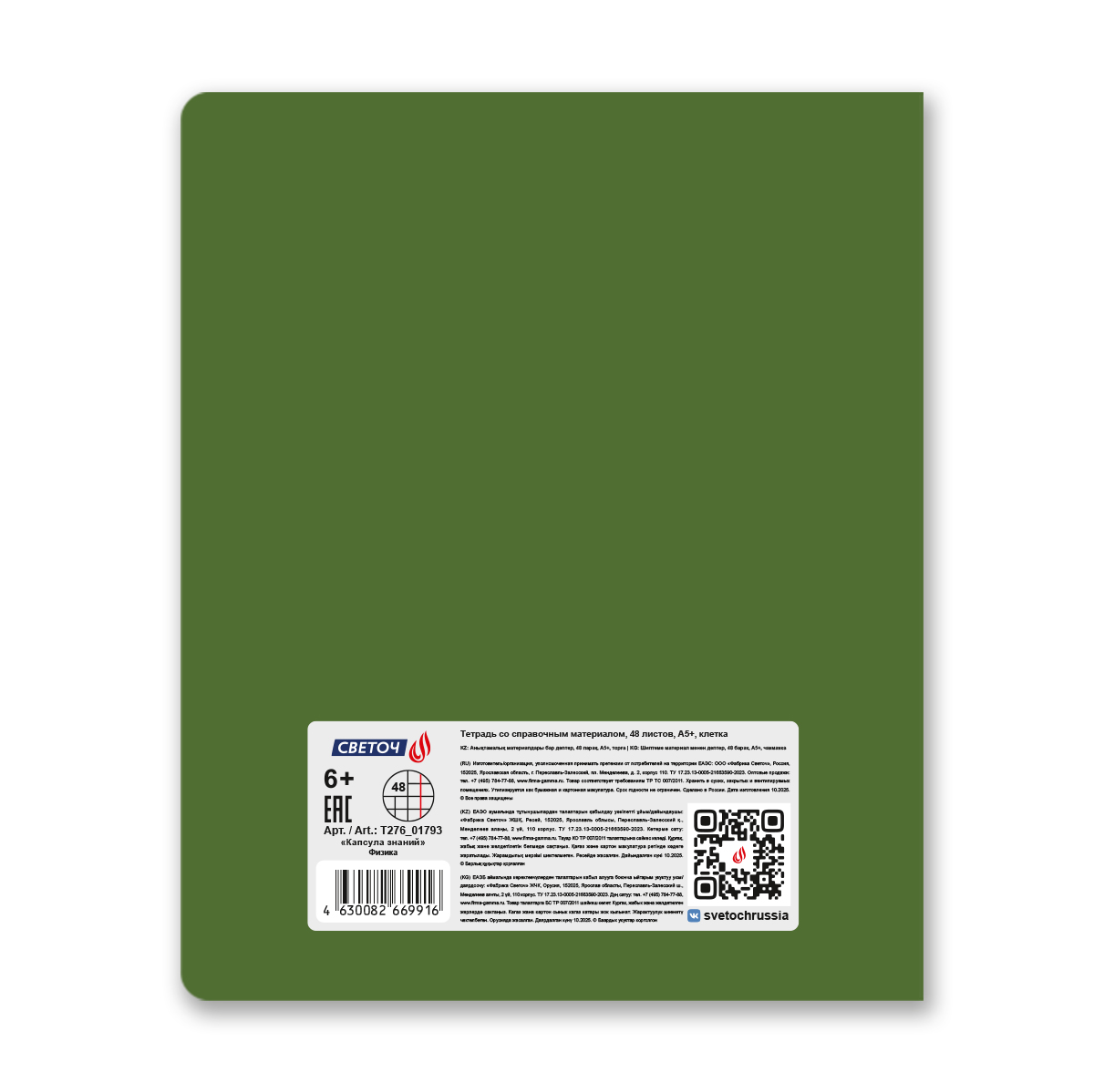 Тетрадь со справочным материалом Капсула знаний, A5 48 л. на скобе 60 г/м², белизна 90% 10 шт клетка, 01793 Капсула знаний Физика, Светоч Т276