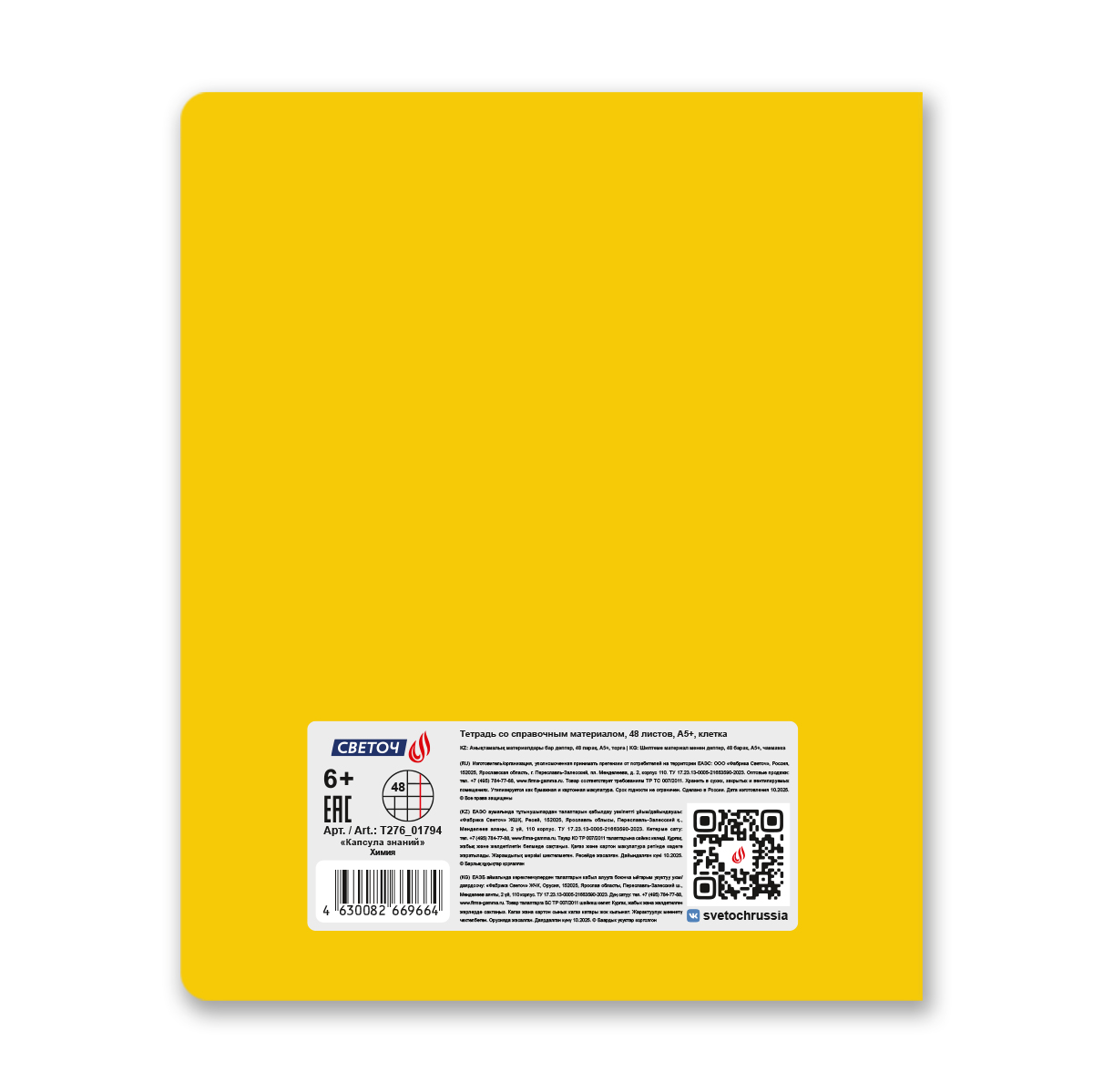 Тетрадь со справочным материалом Капсула знаний, A5 48 л. на скобе 60 г/м², белизна 90% 10 шт клетка, 01794 Капсула знаний Химия, Светоч Т276