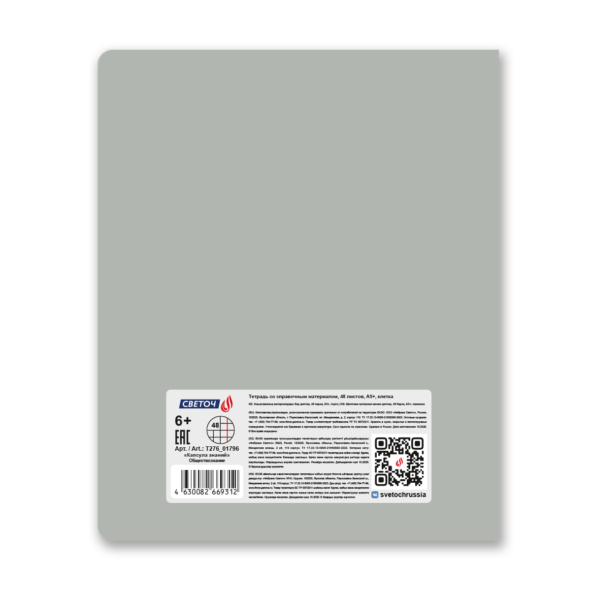 Тетрадь со справочным материалом Капсула знаний, A5 48 л. на скобе 60 г/м², белизна 90% 10 шт клетка, 01796 Капсула знаний Обществознание, Светоч Т276