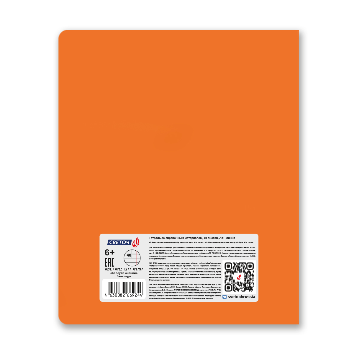 Тетрадь со справочным материалом Капсула знаний, A5 48 л. на скобе 60 г/м², белизна 90% 10 шт линия, 01797 Капсула знаний Литература, Светоч Т277