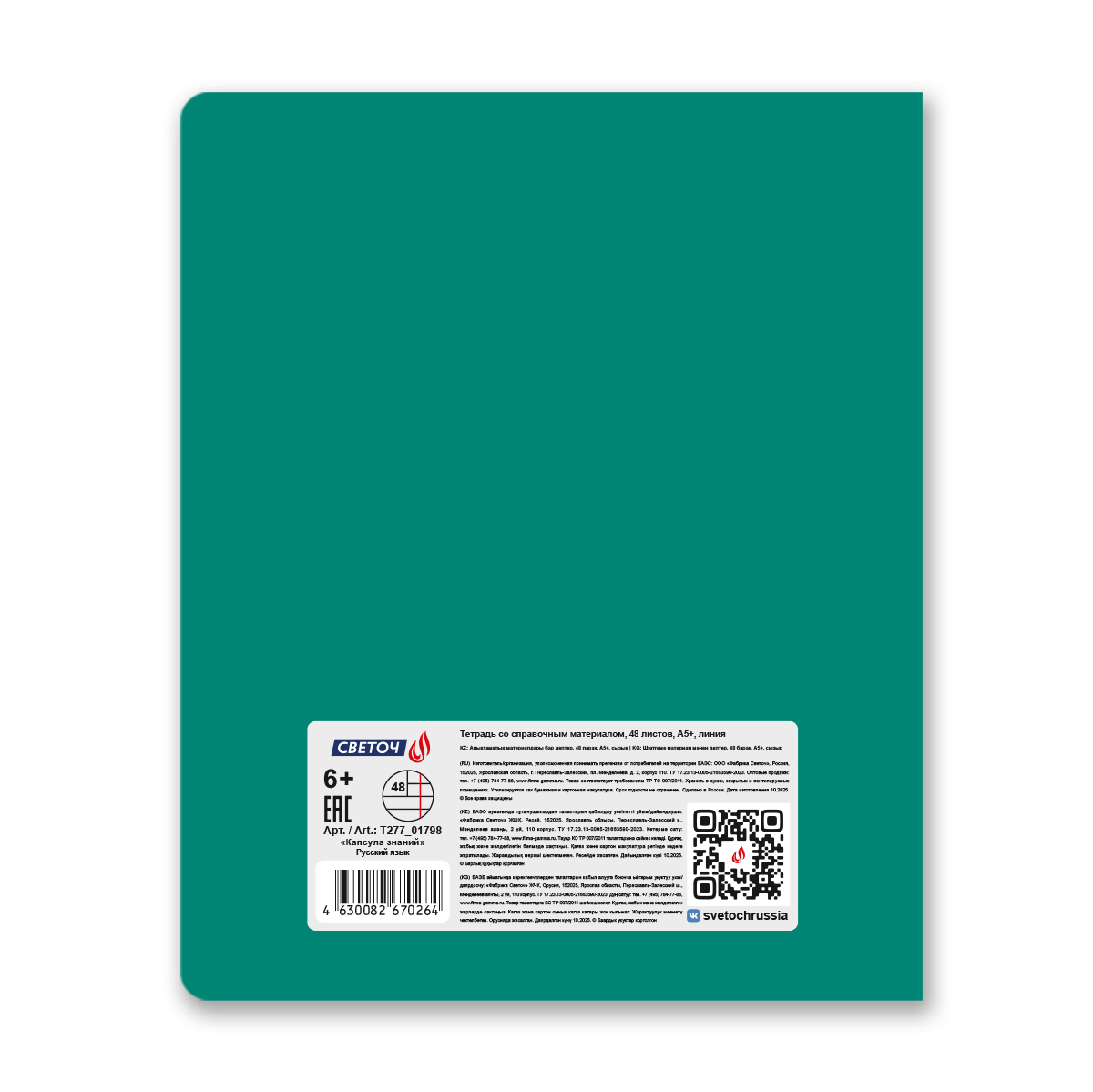 Тетрадь со справочным материалом Капсула знаний, A5 48 л. на скобе 60 г/м², белизна 90% 10 шт линия, 01798 Капсула знаний Русский язык, Светоч Т277
