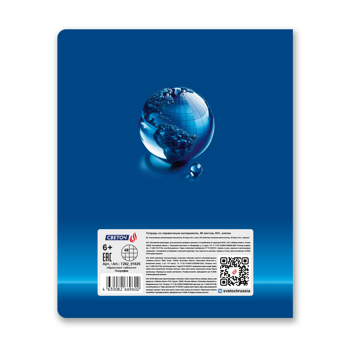 Тетрадь со справочным материалом Кристалл тайного, глянц.ламинация, A5 48 л. на скобе 65 г/м², белизна 100% 10 шт клетка, 01826 Кристалл тайного География, Светоч Т282