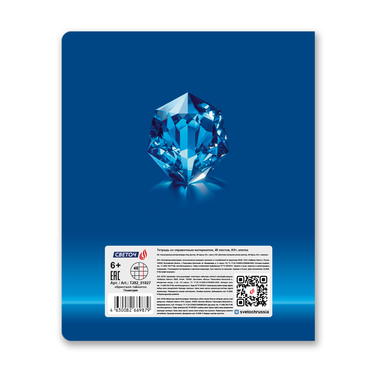Тетрадь со справочным материалом Кристалл тайного, глянц.ламинация, A5 48 л. на скобе 65 г/м², белизна 100% 10 шт клетка, 01827 Кристалл тайного Геометрия, Светоч Т282