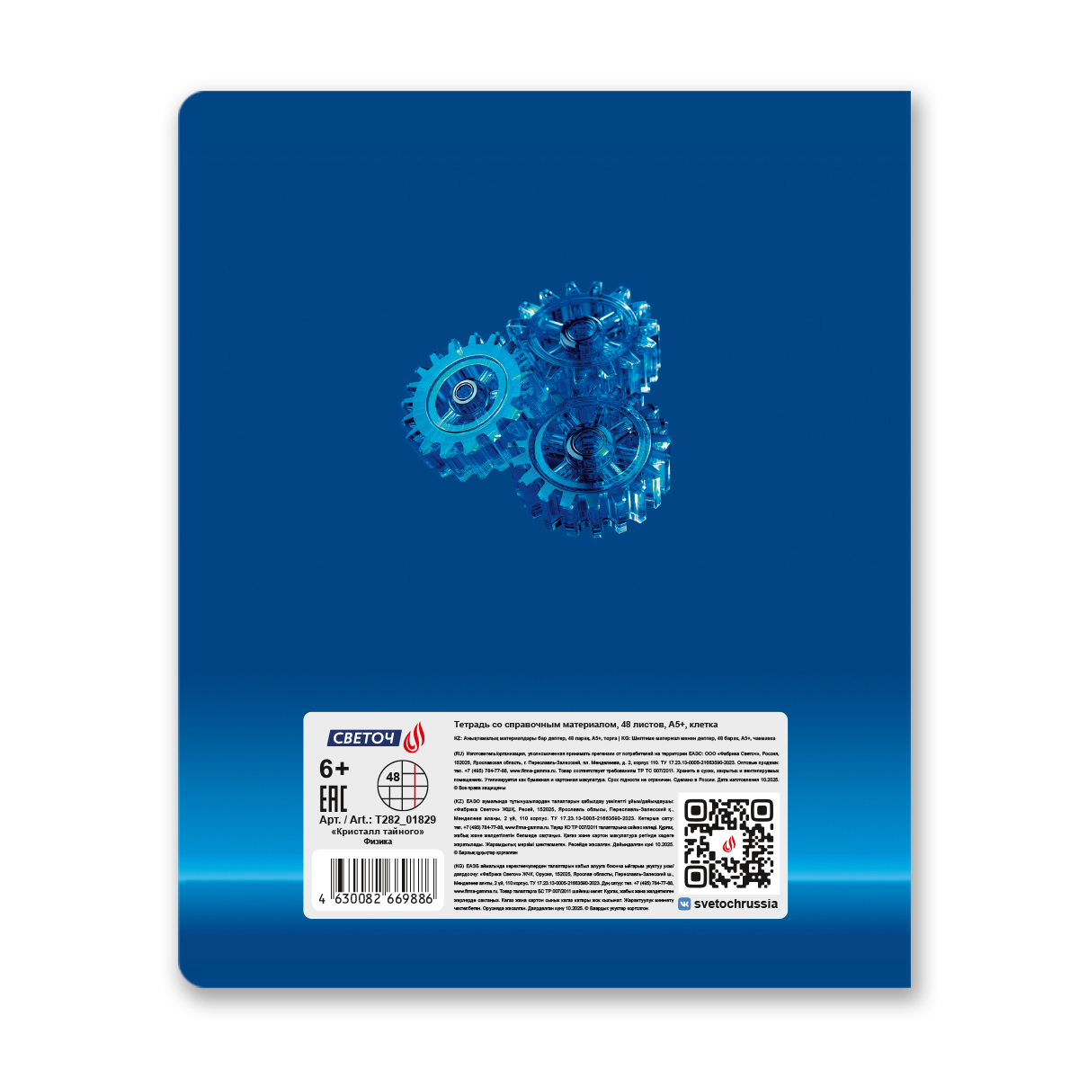 Тетрадь со справочным материалом Кристалл тайного, глянц.ламинация, A5 48 л. на скобе 65 г/м², белизна 100% 10 шт клетка, 01829 Кристалл тайного Физика, Светоч Т282
