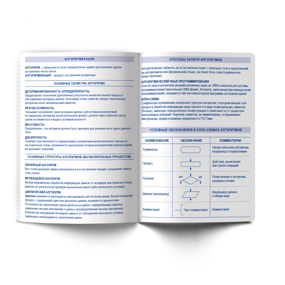 Справочная информация по предмету прикладные листы + форзац задней обложки.