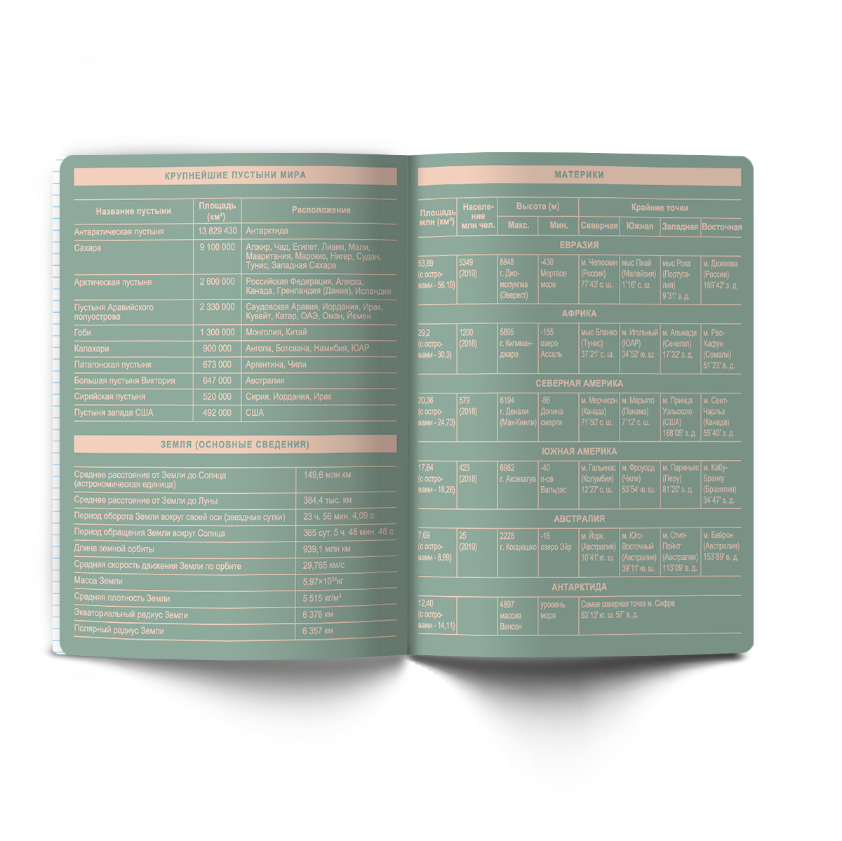Тетрадь со справочным материалом Лёгким почерком, софт-тач ламинация, A5 48 л. на скобе 65 г/м², белизна 100% 10 шт, клетка, 01838 Лёгким почерком География, Светоч Т284