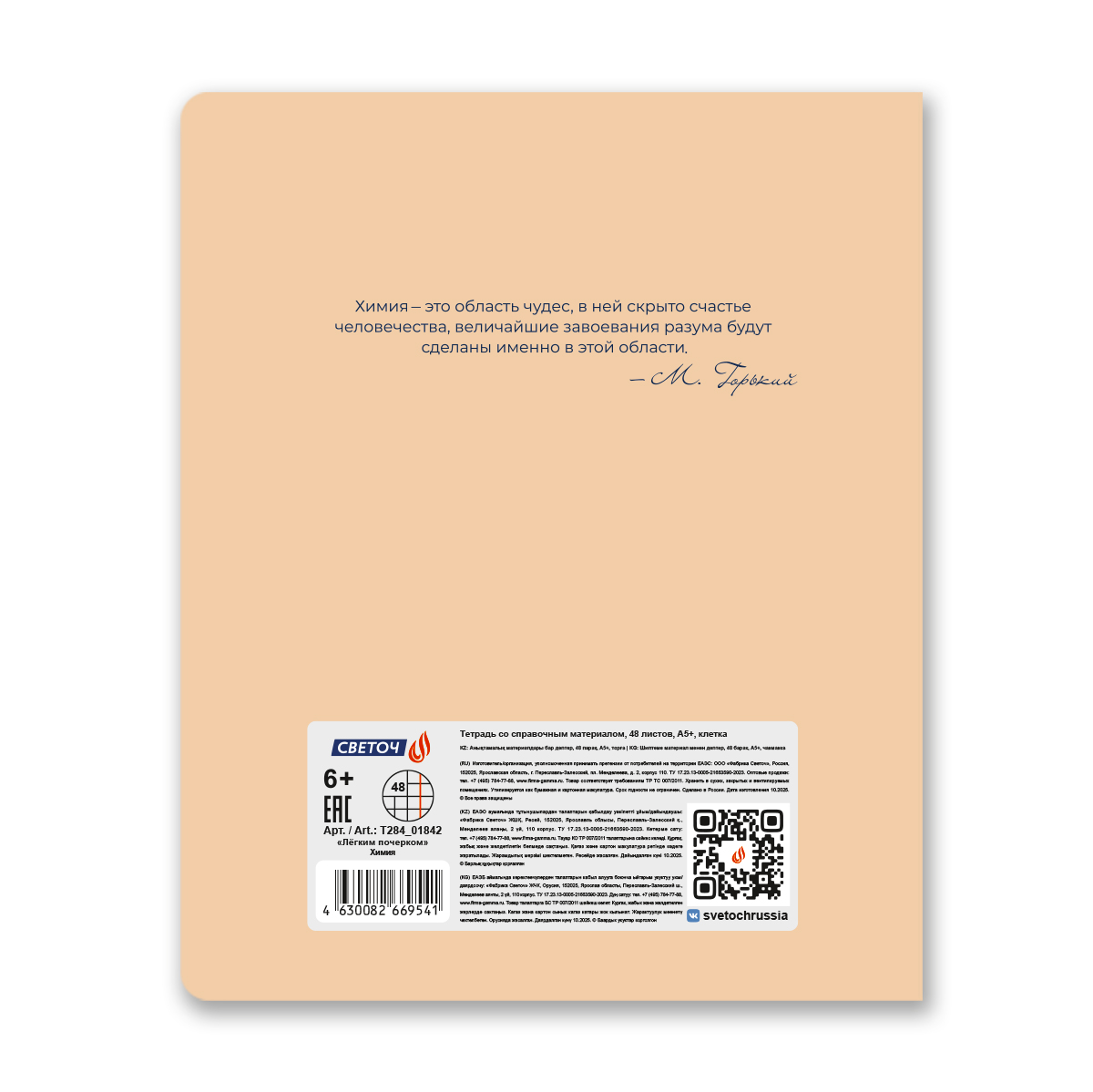 Тетрадь со справочным материалом Лёгким почерком, софт-тач ламинация, A5 48 л. на скобе 65 г/м², белизна 100% 10 шт, клетка, 01842 Лёгким почерком Химия, Светоч Т284