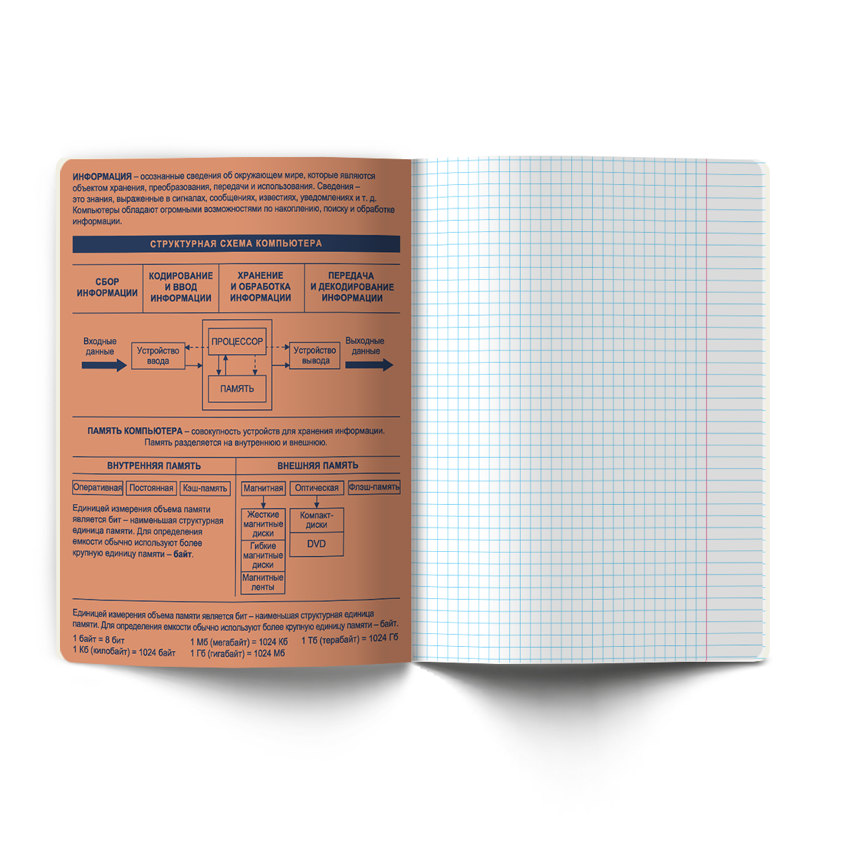 Тетрадь со справочным материалом Лёгким почерком, софт-тач ламинация, A5 48 л. на скобе 65 г/м², белизна 100% 10 шт, клетка, 01843 Лёгким почерком Информатика, Светоч Т284