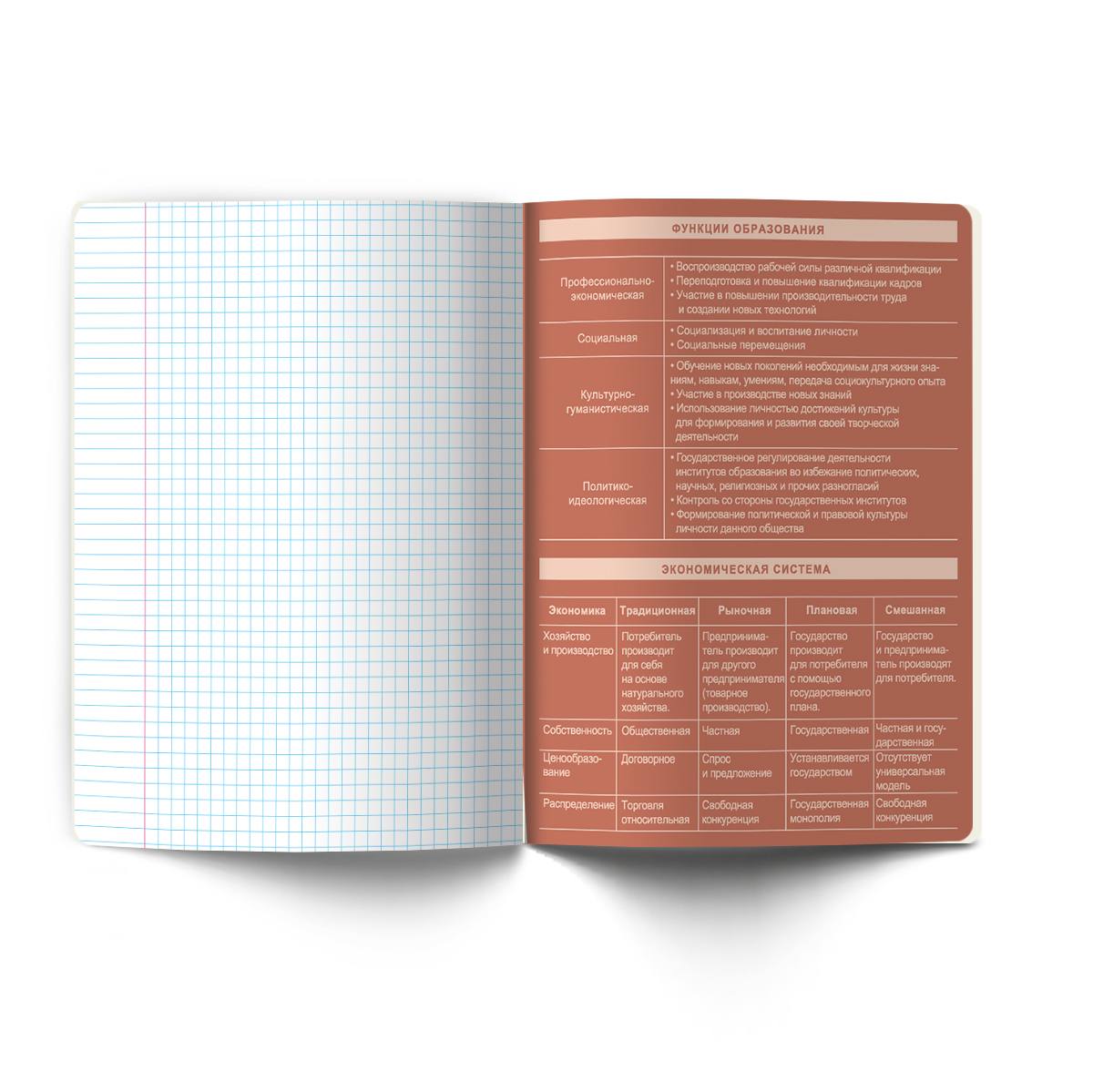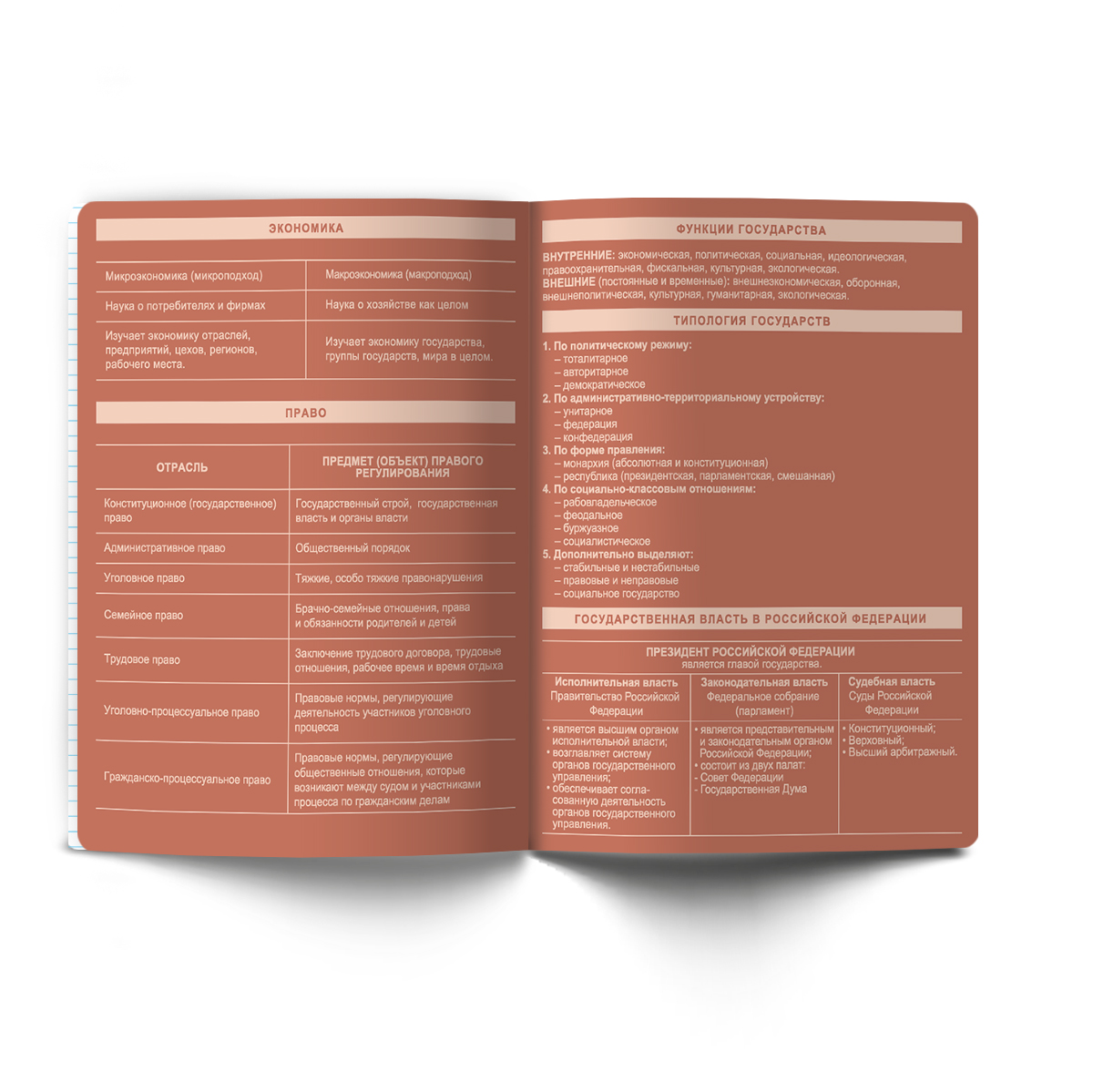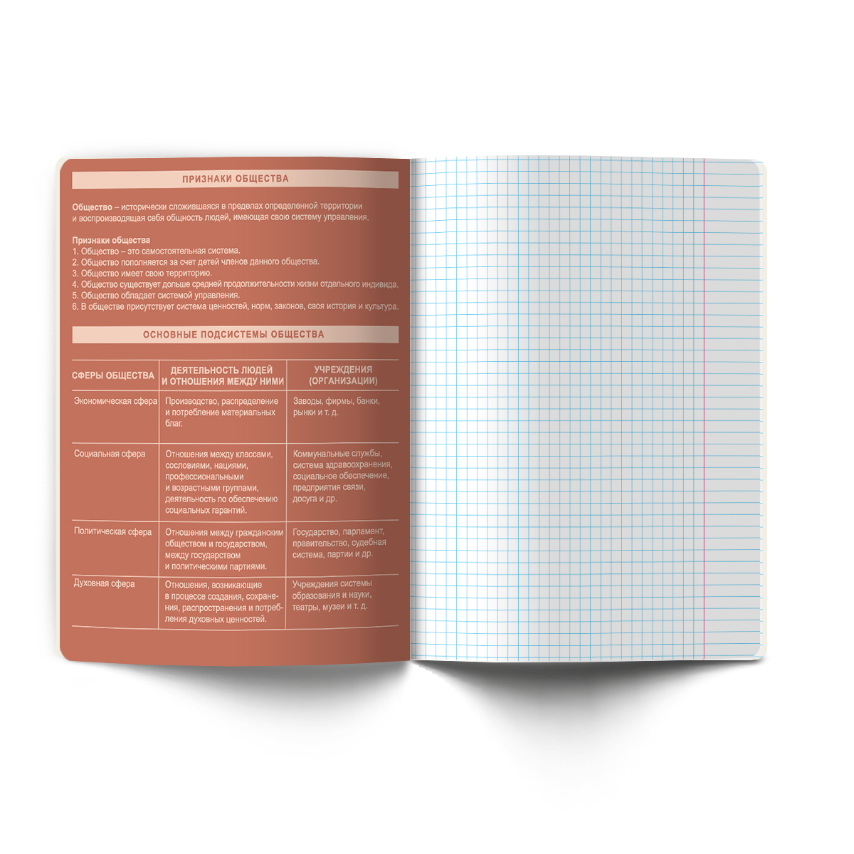 Тетрадь со справочным материалом Лёгким почерком, софт-тач ламинация, A5 48 л. на скобе 65 г/м², белизна 100% 10 шт, клетка, 01844 Лёгким почерком Обществознание, Светоч Т284
