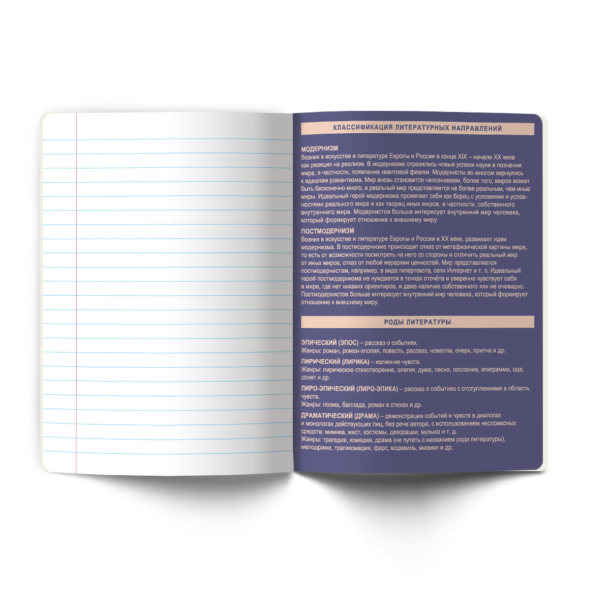 Внутренний блок изготовлен из качественной офсетной бумаги плотностью 65 г/кв. м, 100% белизны, обложка из мелованного картона плотностью 190 г/кв. м. Обложка дополнена спецэффектом в виде софт-тач ламинации.