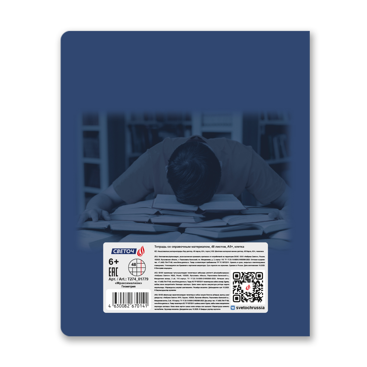 Тетрадь со справочным материалом Мраксимализм, A5 48 л. на скобе 60 г/м², белизна 90% 10 шт клетка, 01779 Мраксимализм Геометрия, Светоч Т274