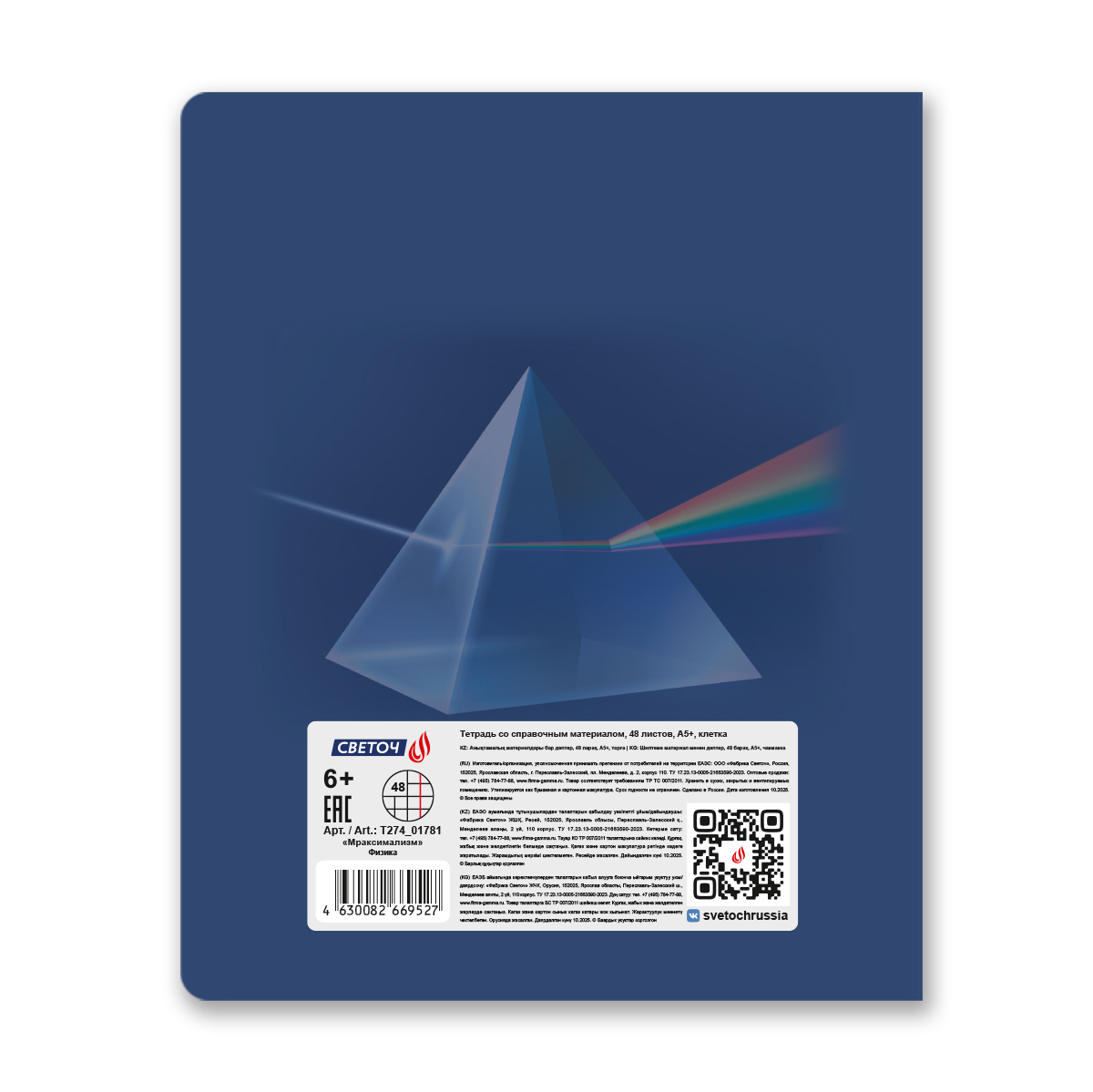 Тетрадь со справочным материалом Мраксимализм, A5 48 л. на скобе 60 г/м², белизна 90% 10 шт клетка, 01781 Мраксимализм Физика, Светоч Т274
