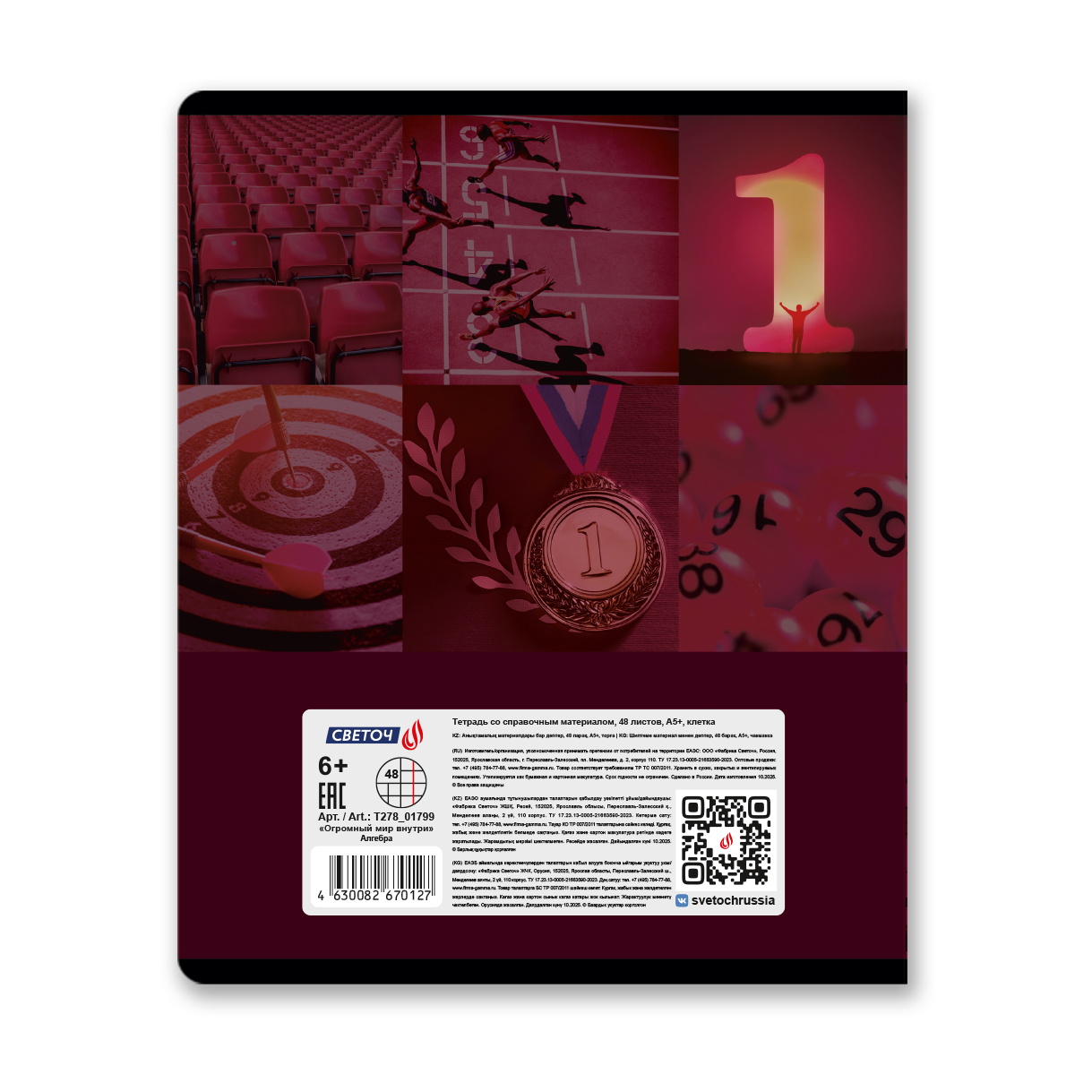 Тетрадь со справочным материалом Огромный мир внутри, A5 48 л. на скобе 60 г/м², белизна 90% 10 шт клетка, 01799 Огромный мир внутри Алгебра, Светоч Т278