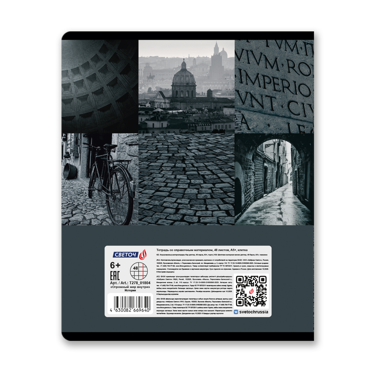 Тетрадь со справочным материалом Огромный мир внутри, A5 48 л. на скобе 60 г/м², белизна 90% 10 шт клетка, 01804 Огромный мир внутри История, Светоч Т278