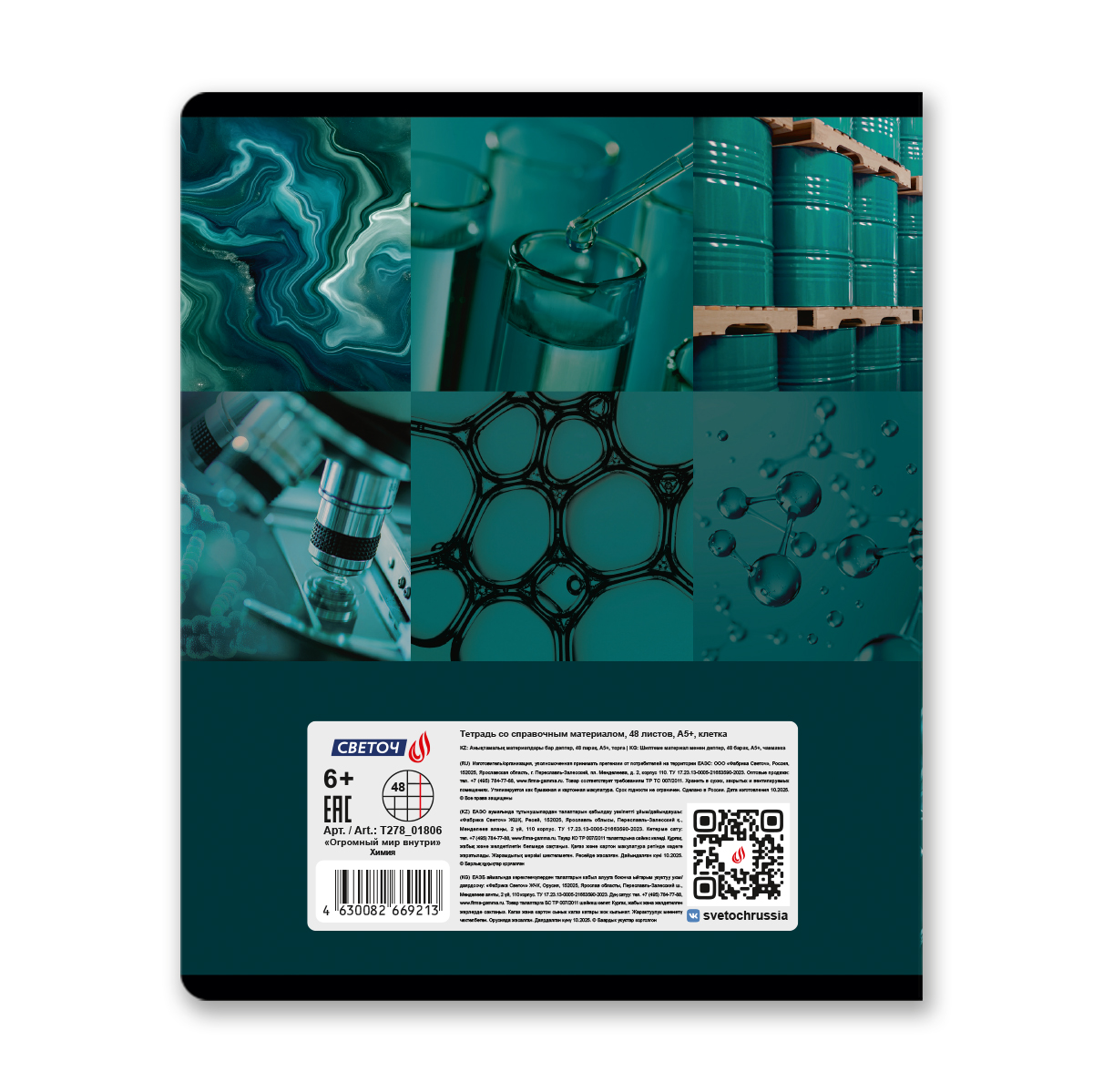 Тетрадь со справочным материалом Огромный мир внутри, A5 48 л. на скобе 60 г/м², белизна 90% 10 шт клетка, 01806 Огромный мир внутри Химия, Светоч Т278