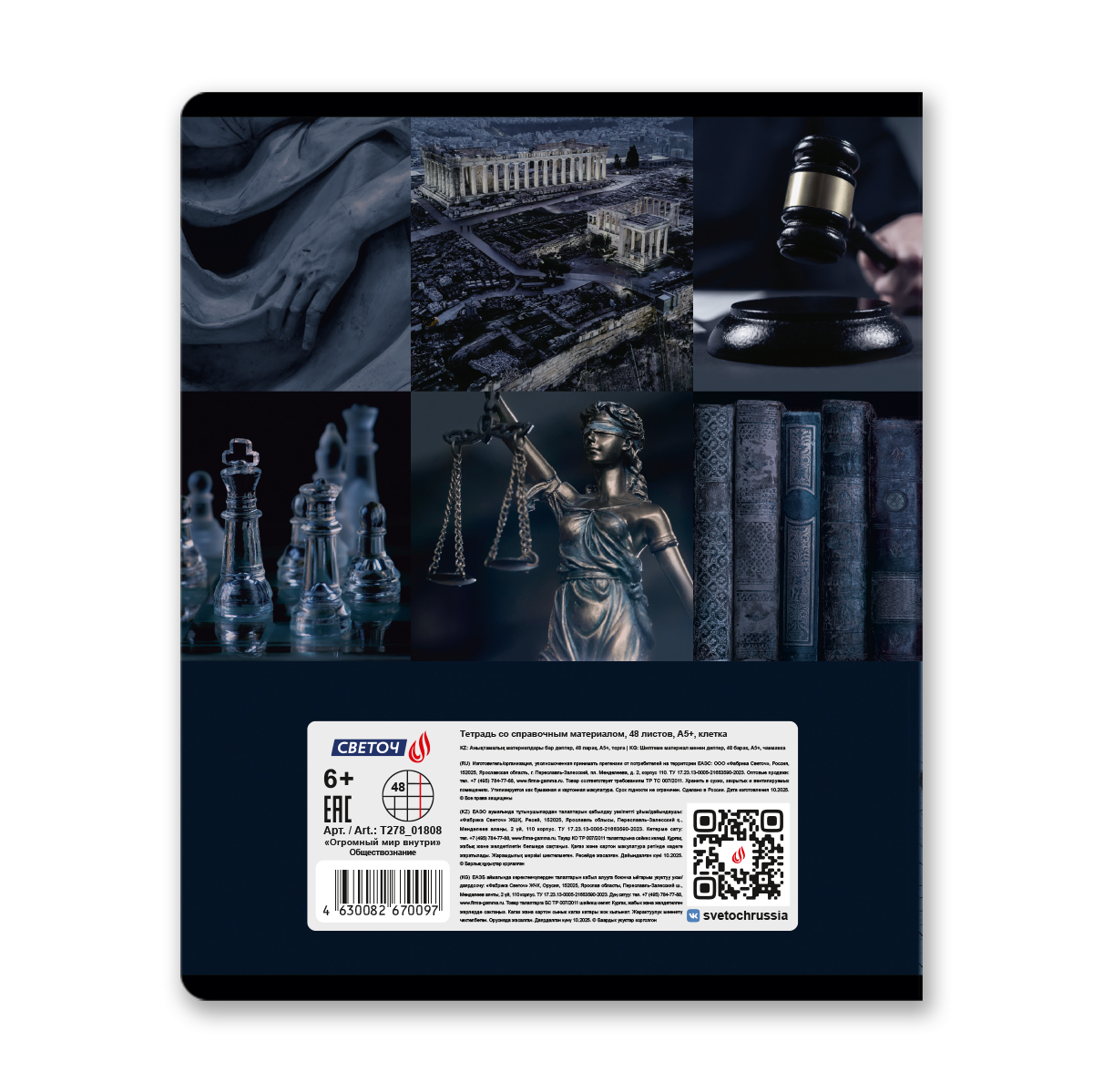Тетрадь со справочным материалом Огромный мир внутри, A5 48 л. на скобе 60 г/м², белизна 90% 10 шт клетка, 01808 Огромный мир внутри Обществознание, Светоч Т278