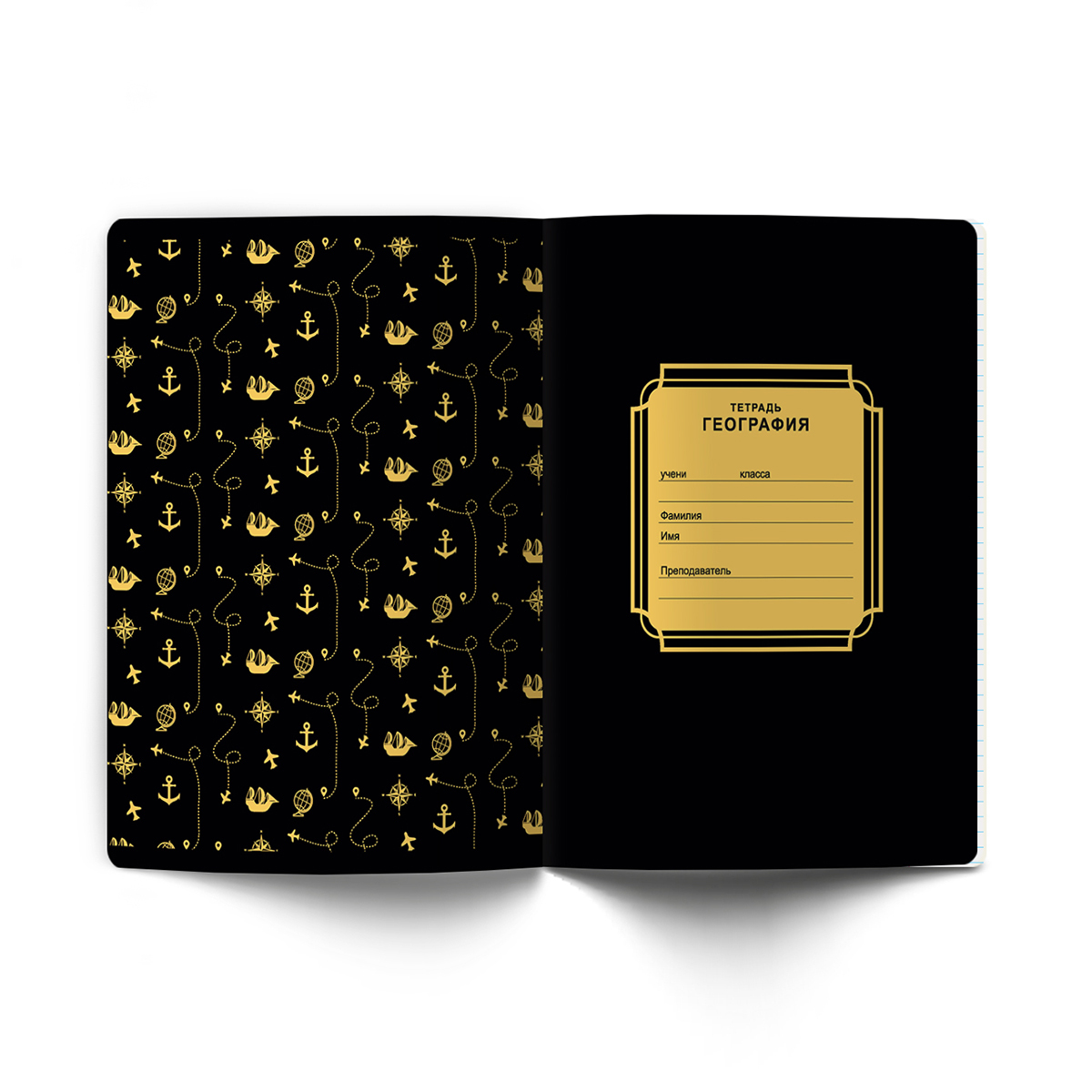 Тетрадь со справочным материалом Золотая коллекция, тиснение золотой фольгой, A5+ 48 л. на скобе 65 г/м², белизна 100 %, 10 шт, клетка, 01325 Золотая коллекция География, Светоч Т145