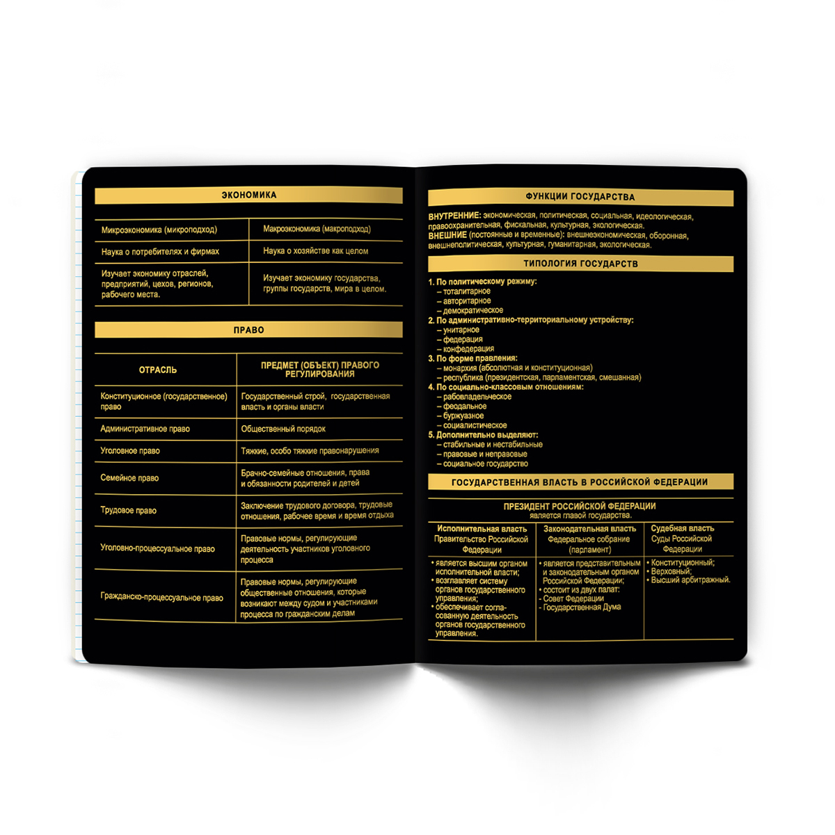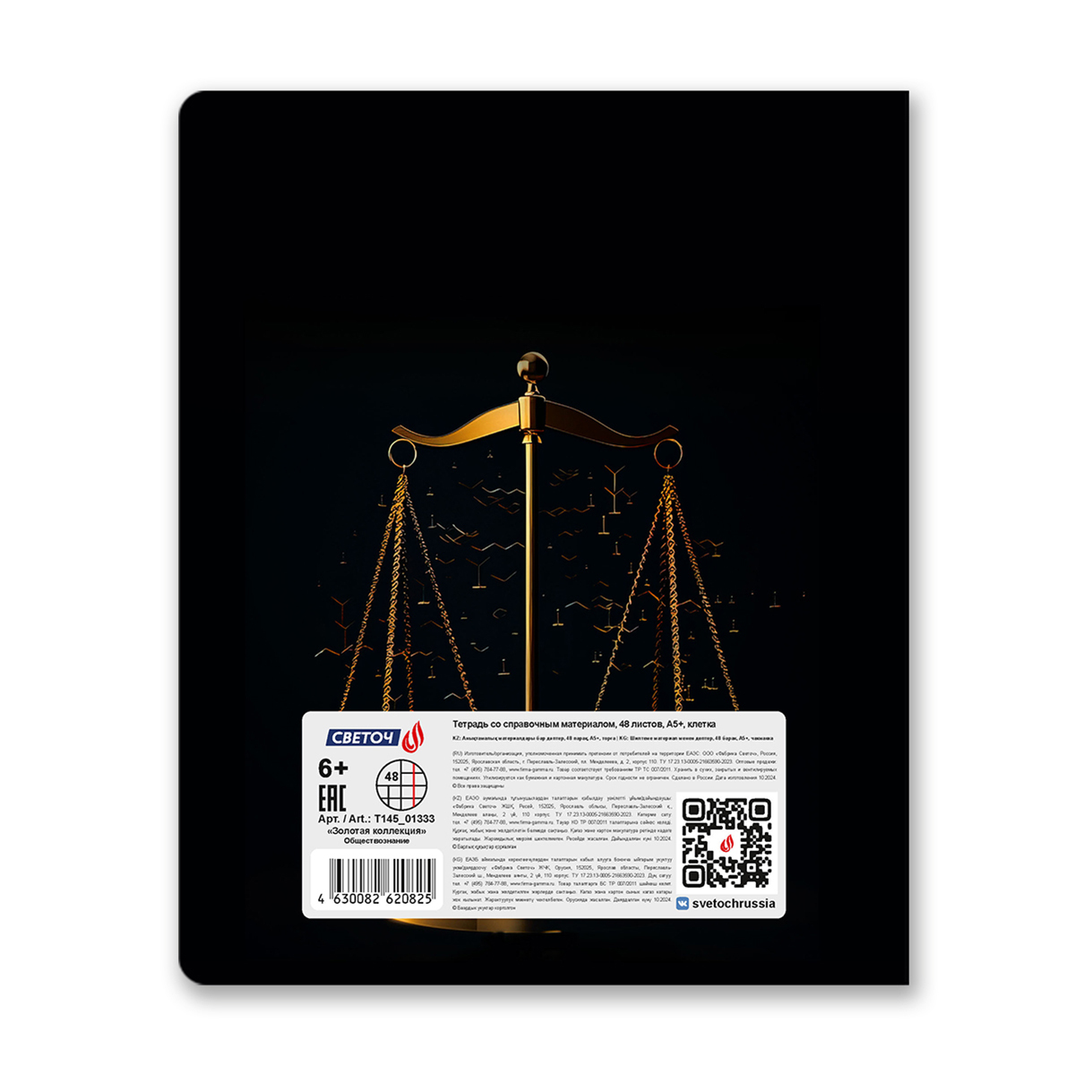 Тетрадь со справочным материалом Золотая коллекция, тиснение золотой фольгой, A5+ 48 л. на скобе 65 г/м², белизна 100 %, 10 шт, клетка, 01333 Золотая коллекция Обществознание, Светоч Т145
