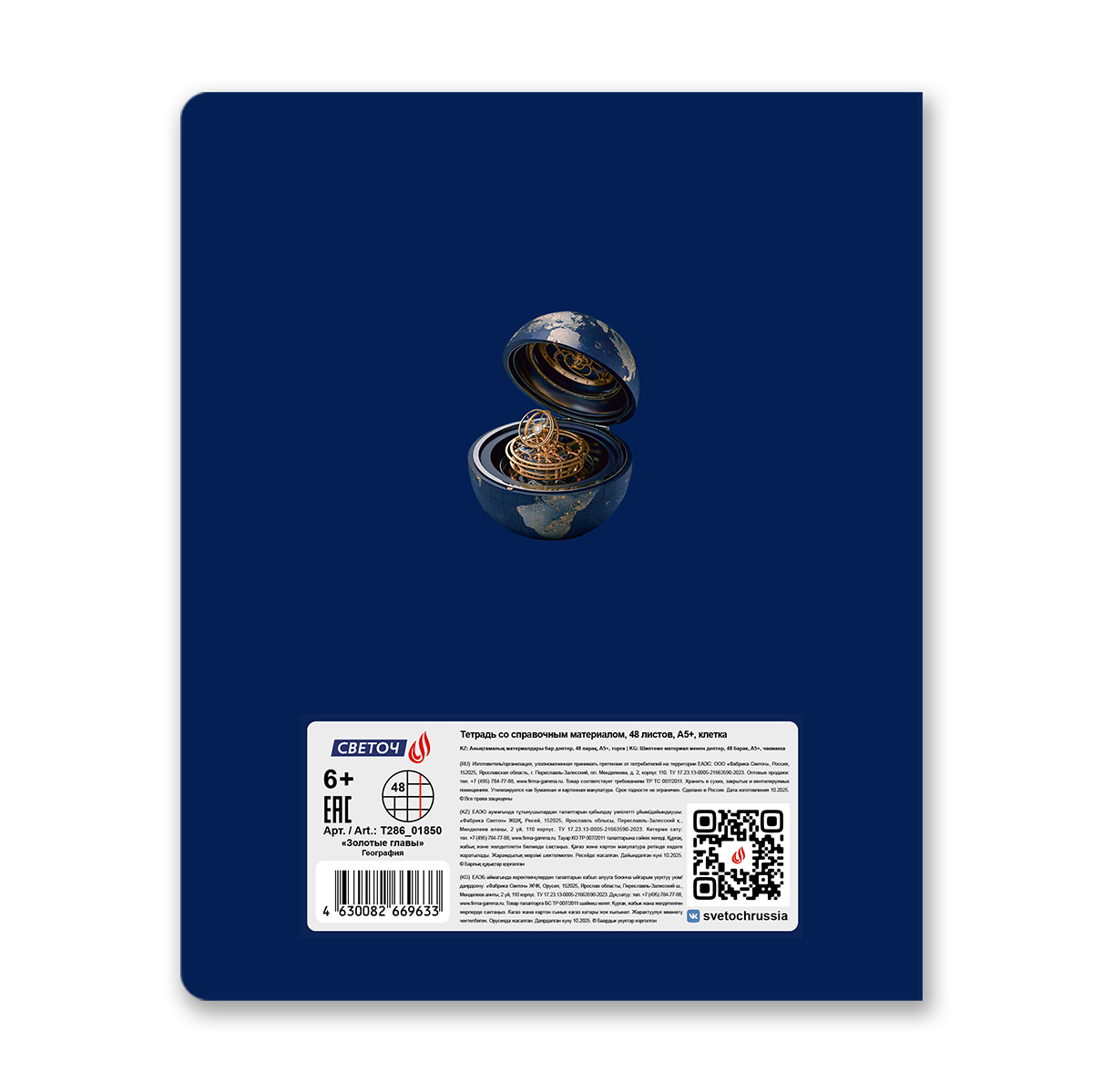 Тетрадь со справочным материалом Золотые главы, тисн.золот.фольгой, A5 48 л. на скобе 65 г/м², белизна 100% 10 шт клетка, 01850 Золотые главы География, Светоч Т286