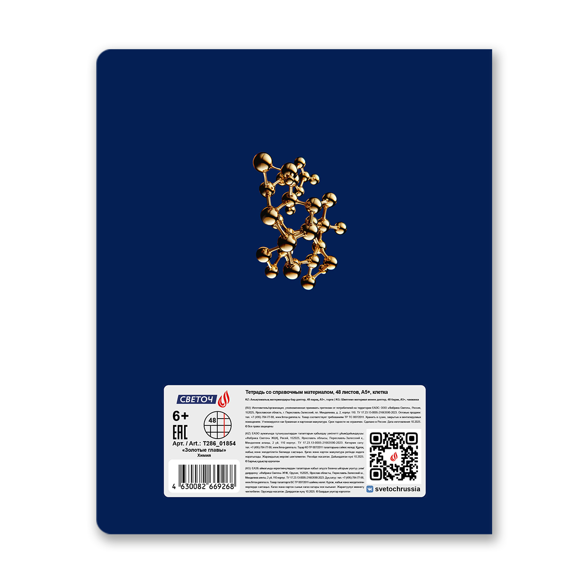 Тетрадь со справочным материалом Золотые главы, тисн.золот.фольгой, A5 48 л. на скобе 65 г/м², белизна 100% 10 шт клетка, 01854 Золотые главы Химия, Светоч Т286